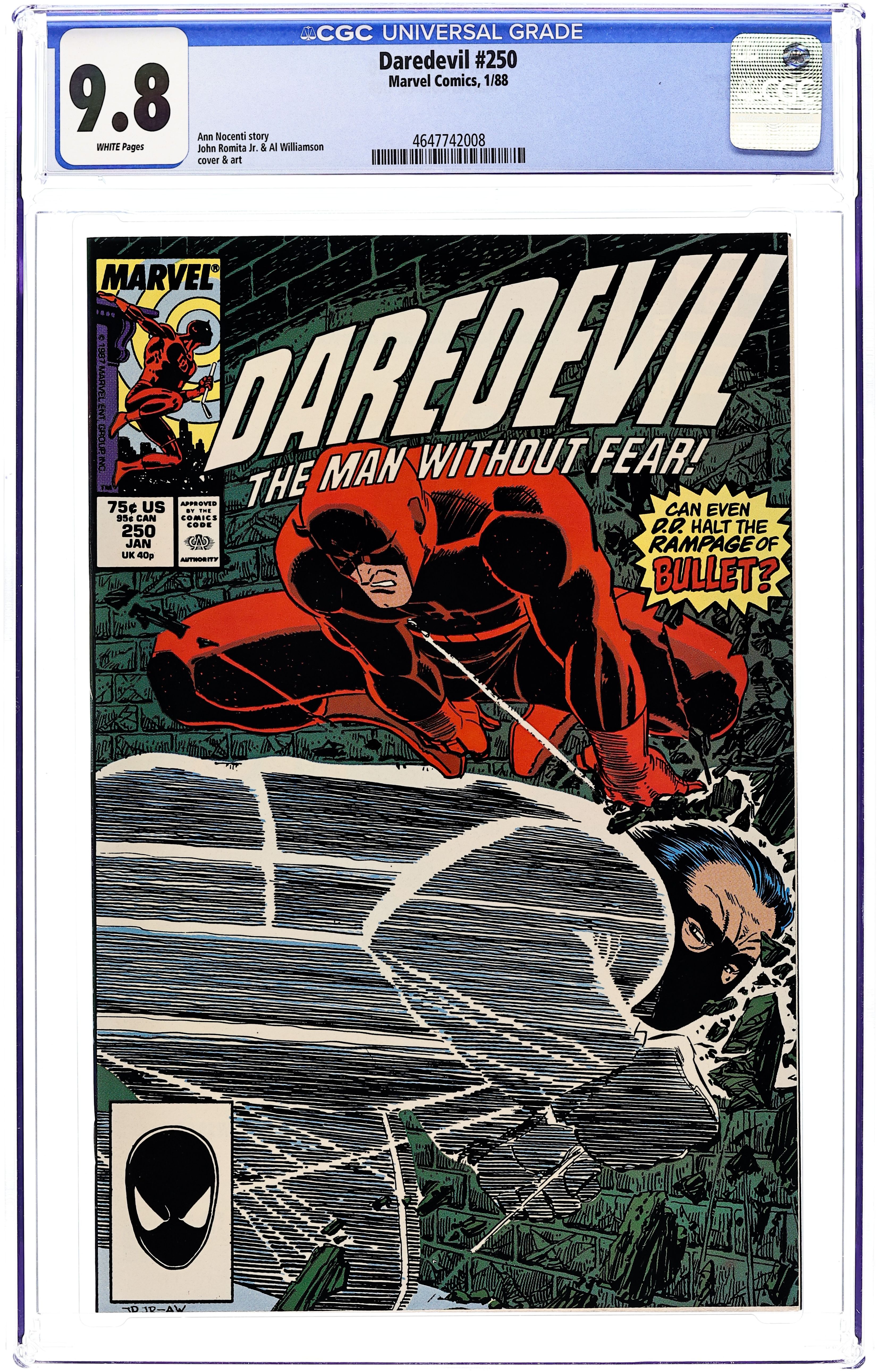 Direct Edition. Cover pencils by John Romita, Jr., inks by Al Williamson. Second appearance of Typhoid in Temptation!, script by Ann Nocenti, pencils by John Romita, Jr., inks by Al Williamson; Matt struggles to help his team win the court case against Kelco and the Kingpin; DD battles Typhoid for the first time. 32 pgs. Cover price $0.75. Cover price $0.75.