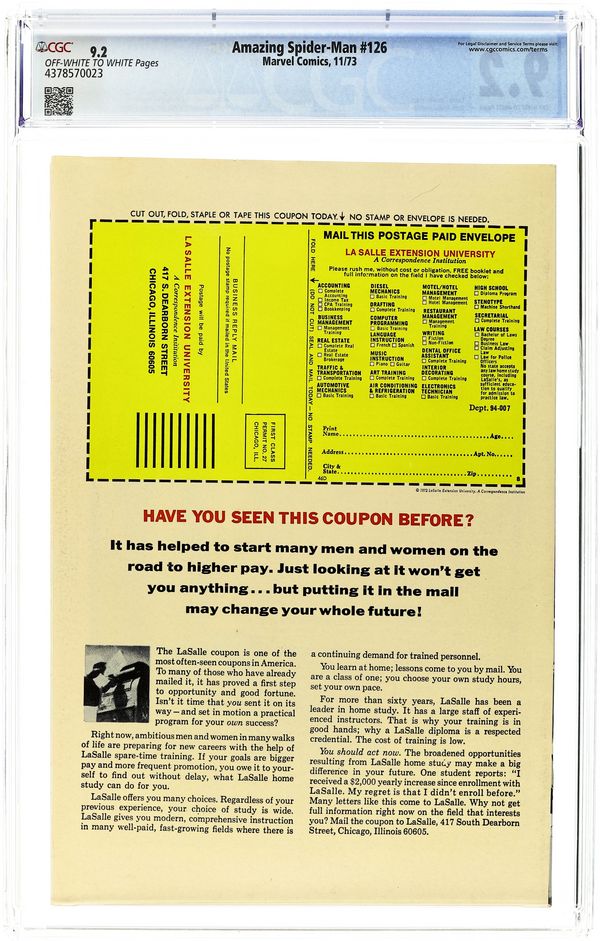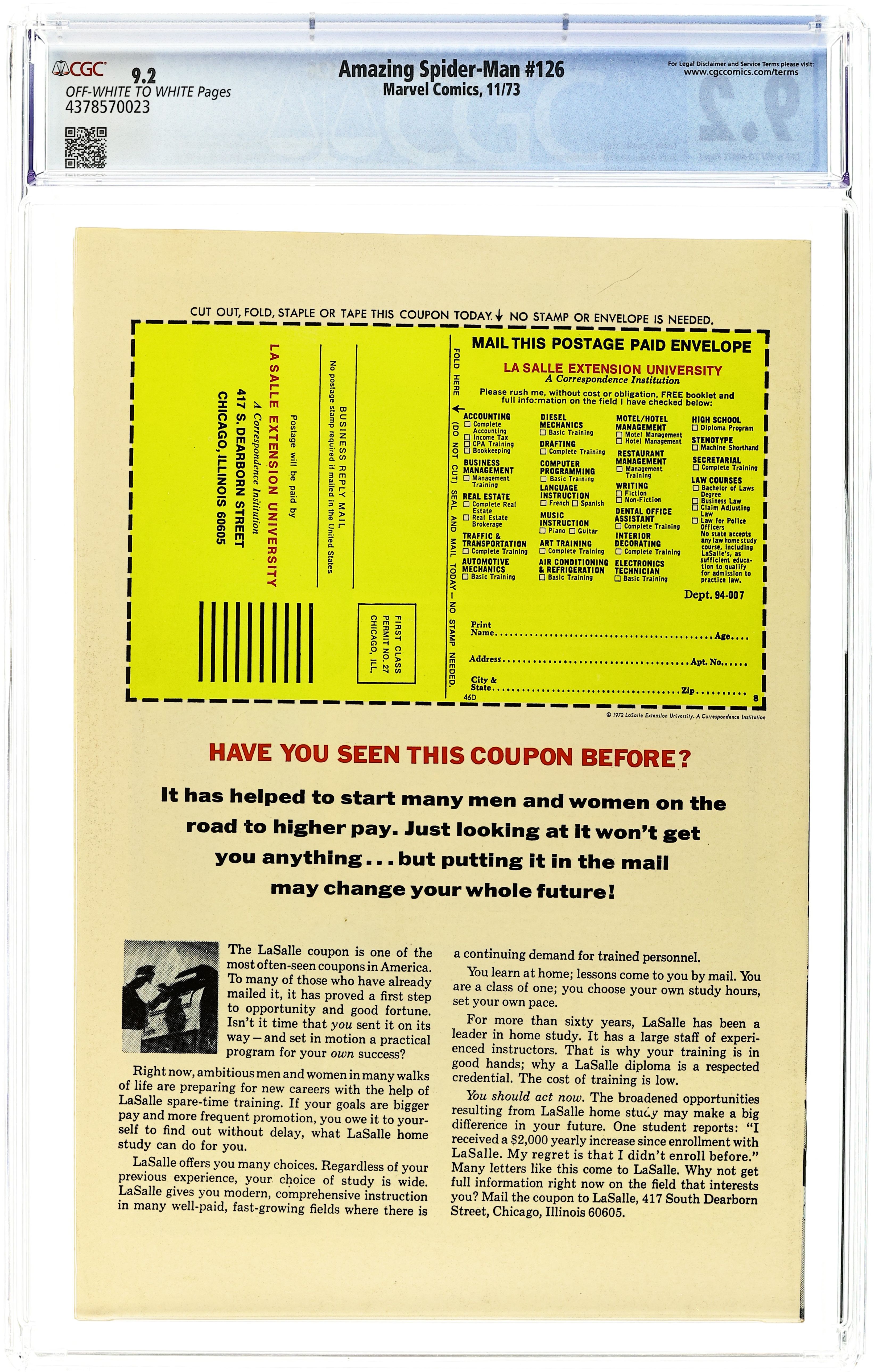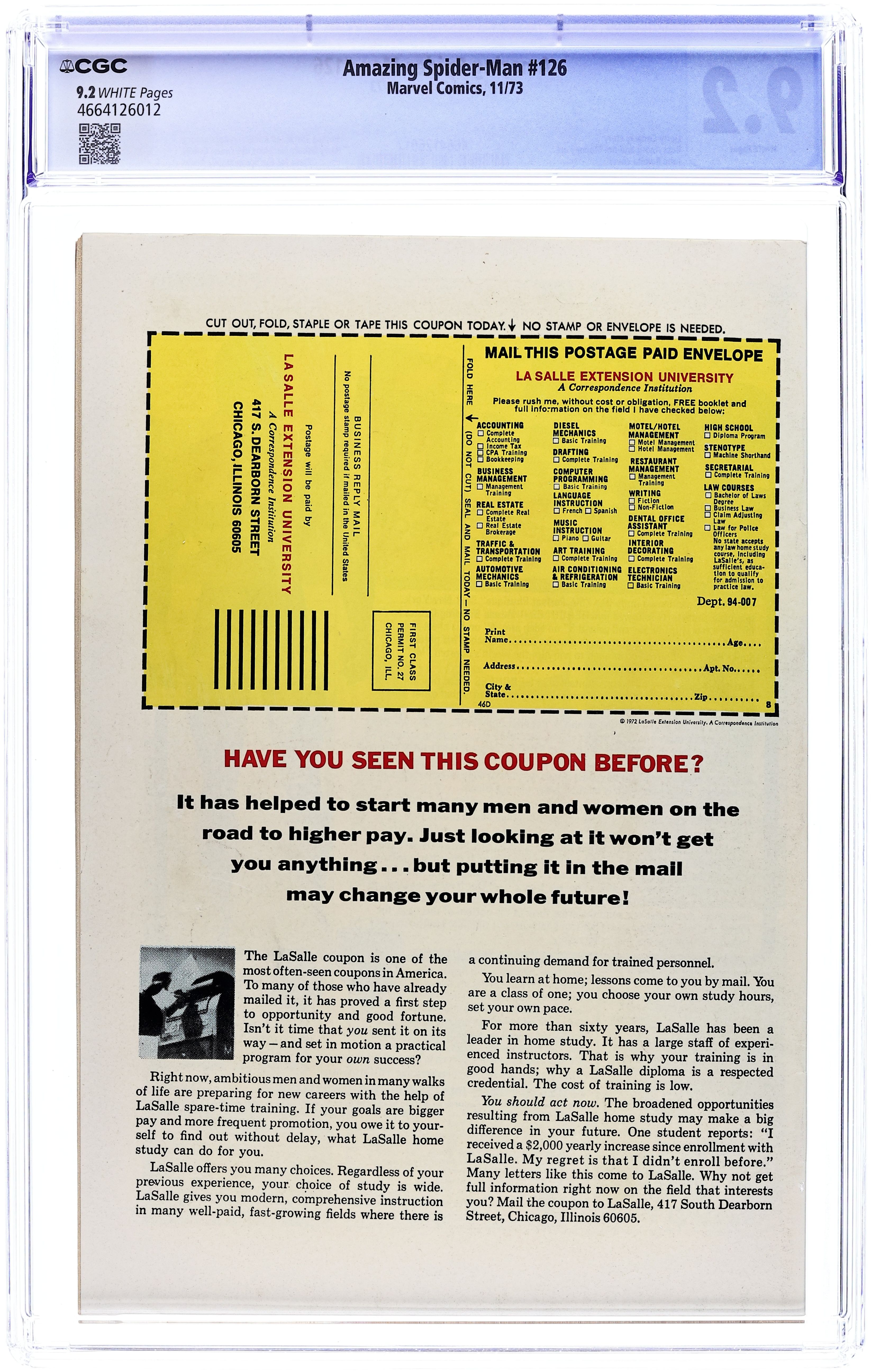 Tags: Marvel Legacy Numbering: Amazing Spider-Man (part 126), Spider-ManAmazing Spider-Man (1963 1st Series) 126 CGC 9.2