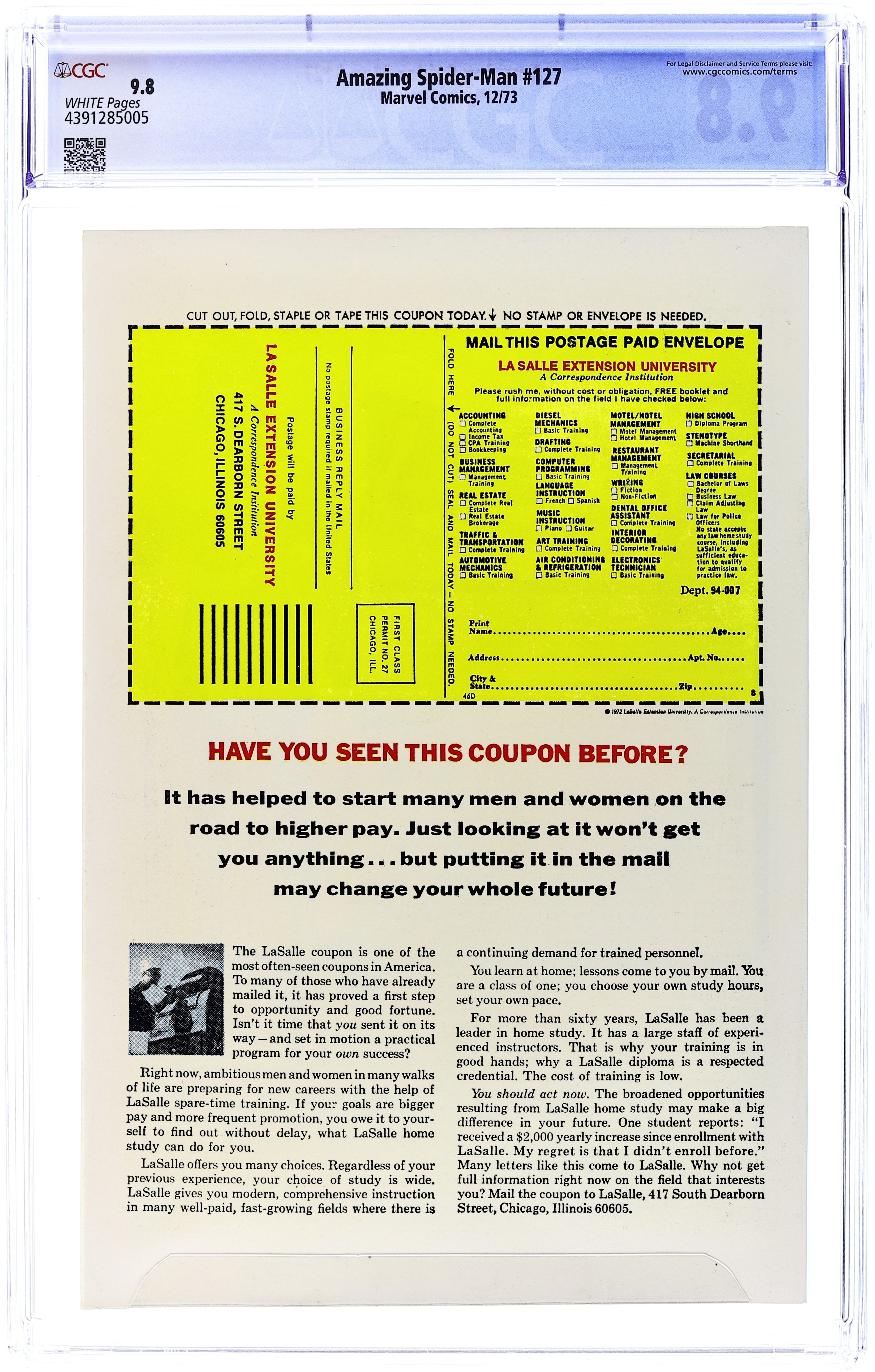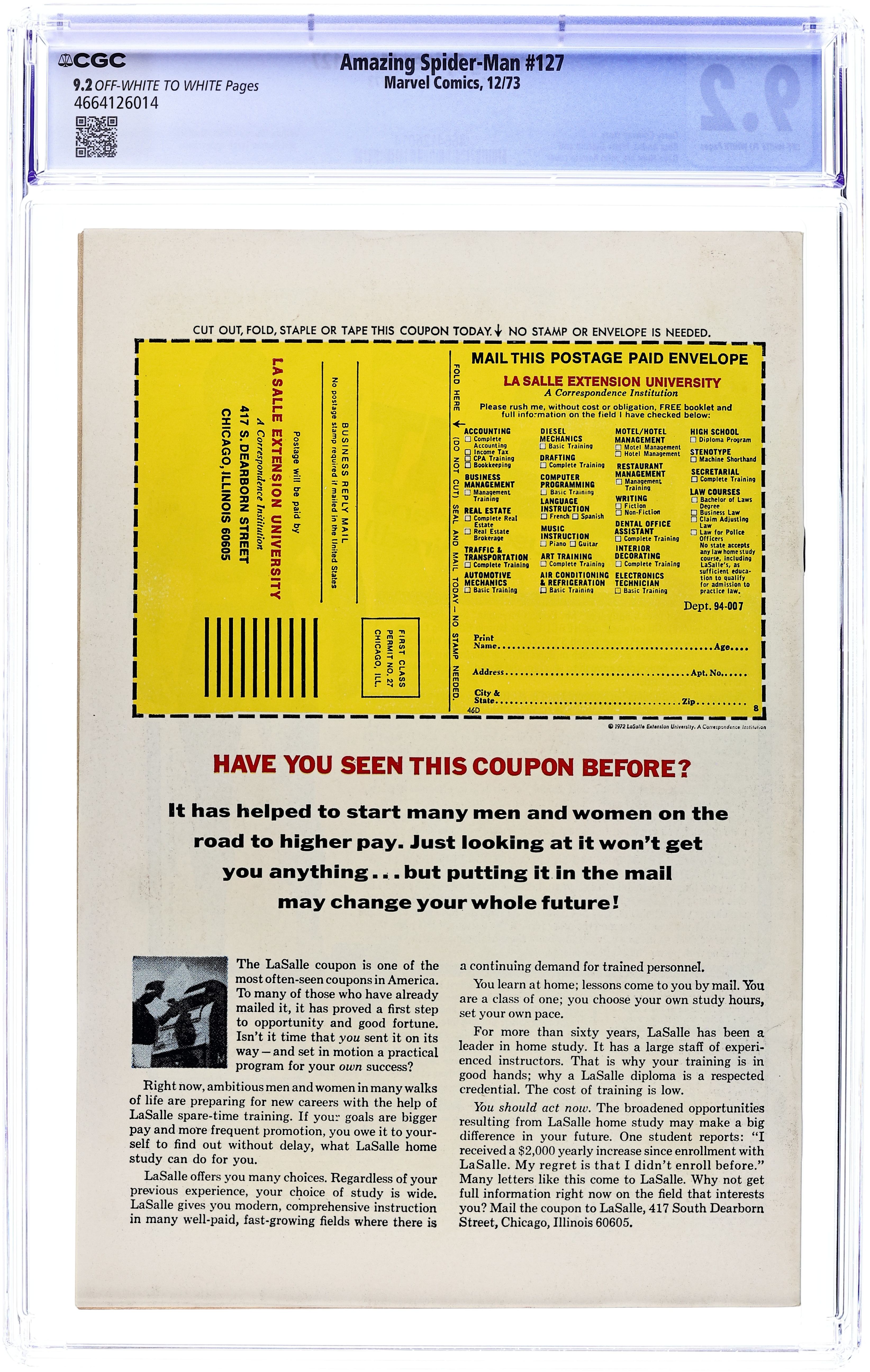 Tags: Marvel Legacy Numbering: Amazing Spider-Man (part 127), Spider-ManAmazing Spider-Man (1963 1st Series) 127 CGC 9.2