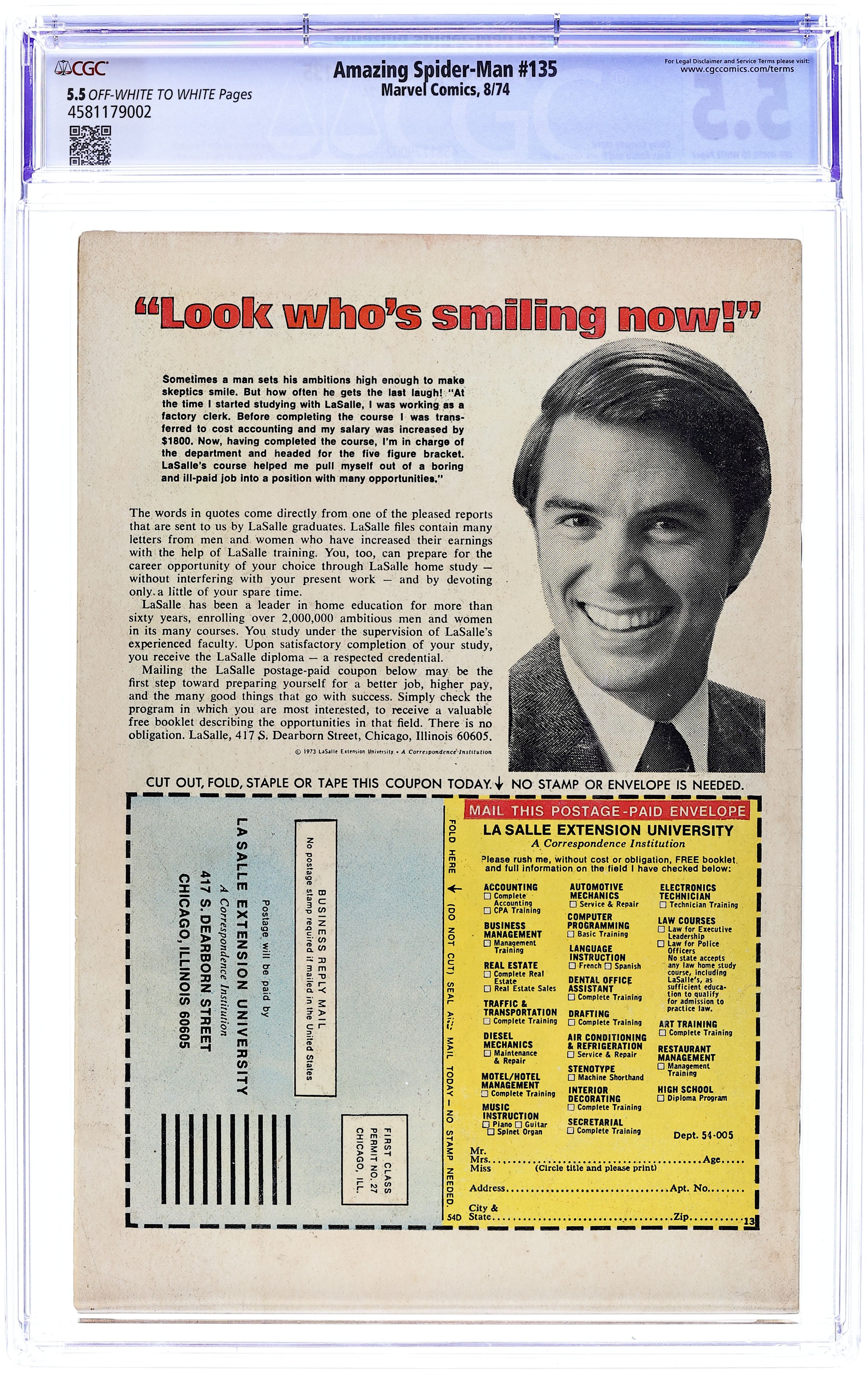 Tags: Marvel Legacy Numbering: Amazing Spider-Man (part 135), Spider-ManAmazing Spider-Man (1963 1st Series) 135 CGC 9.6