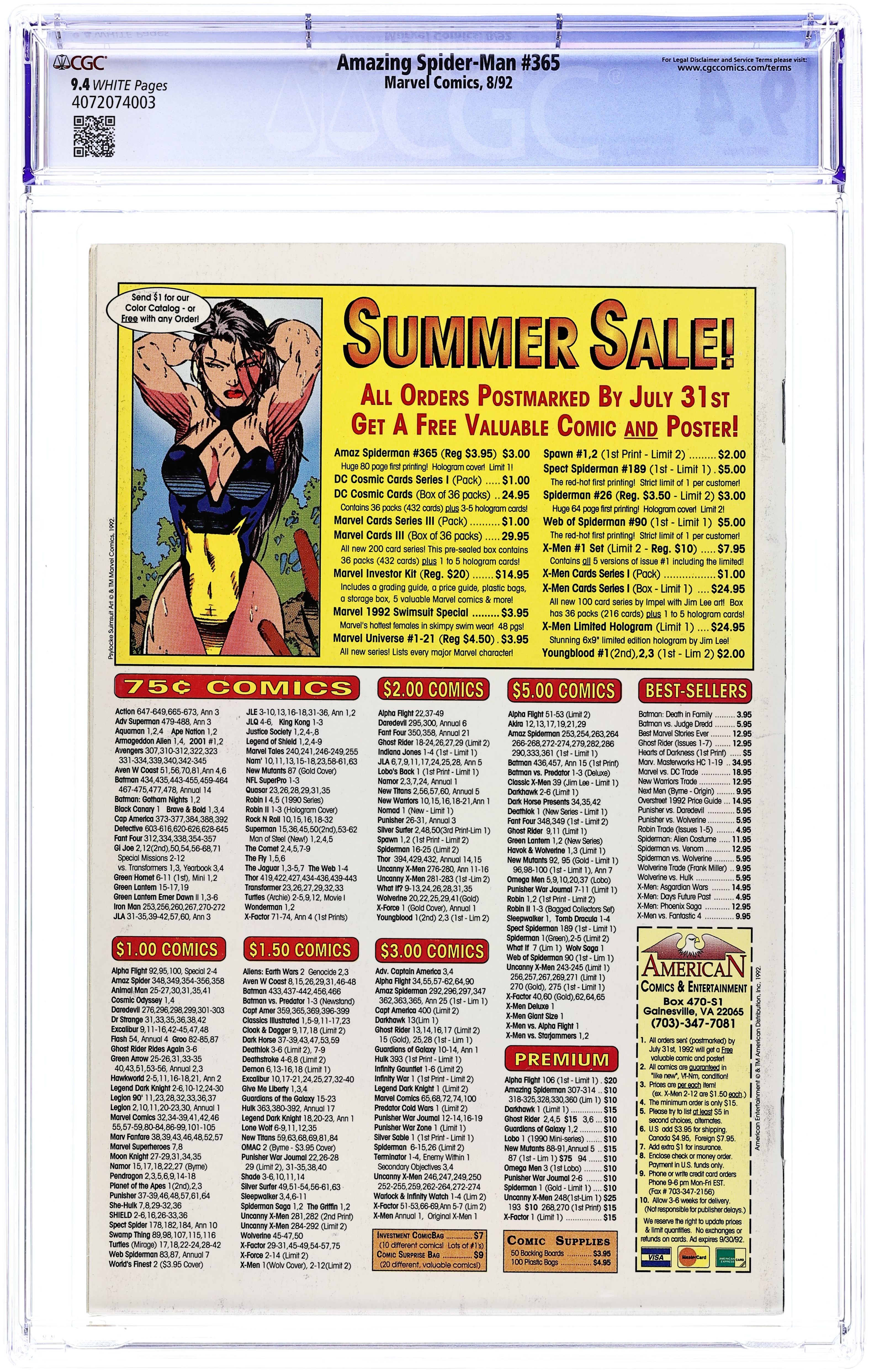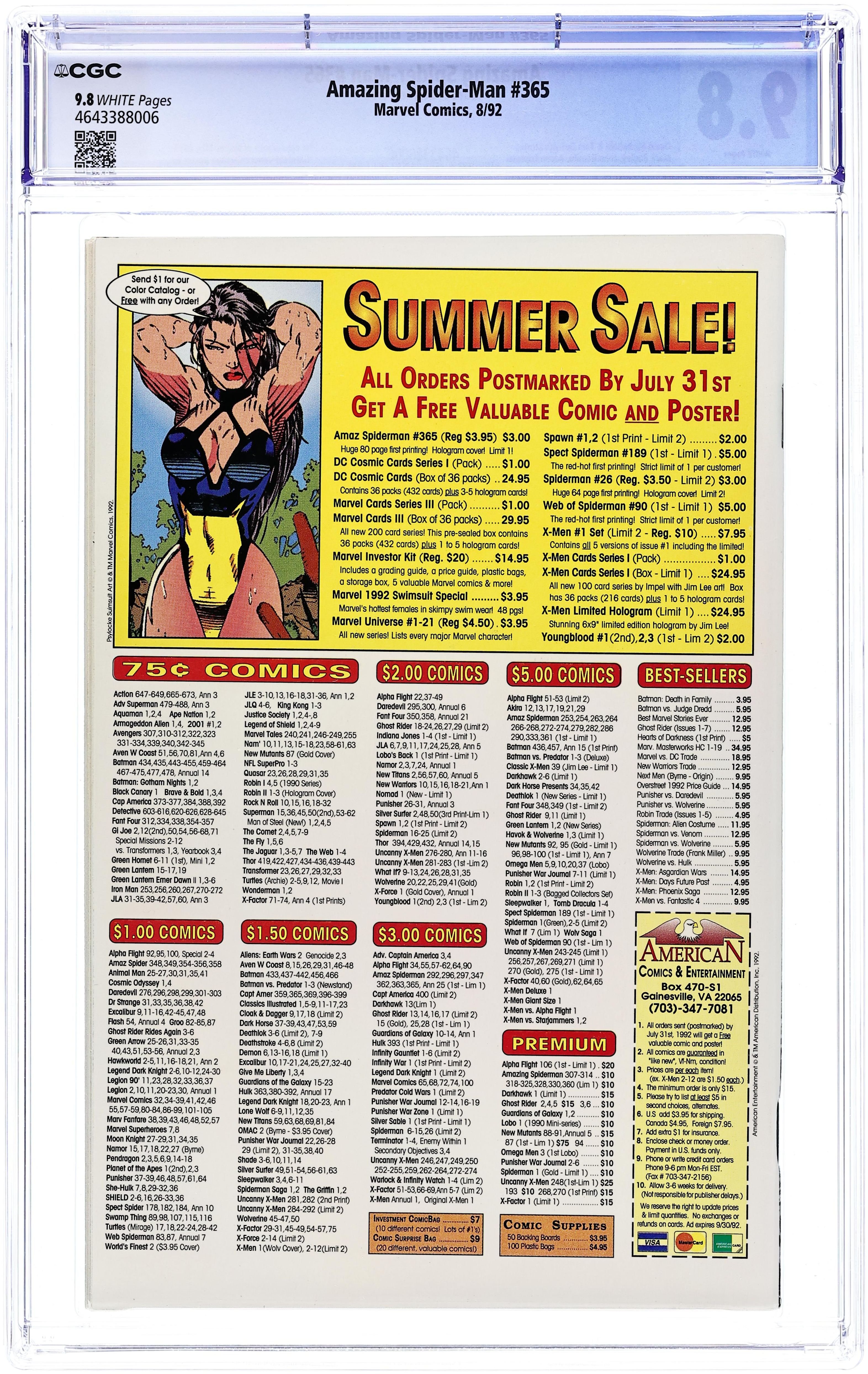 Tags: Marvel Legacy Numbering: Amazing Spider-Man (part 365), Spider-ManAmazing Spider-Man (1963 1st Series) 365 CGC 9.4