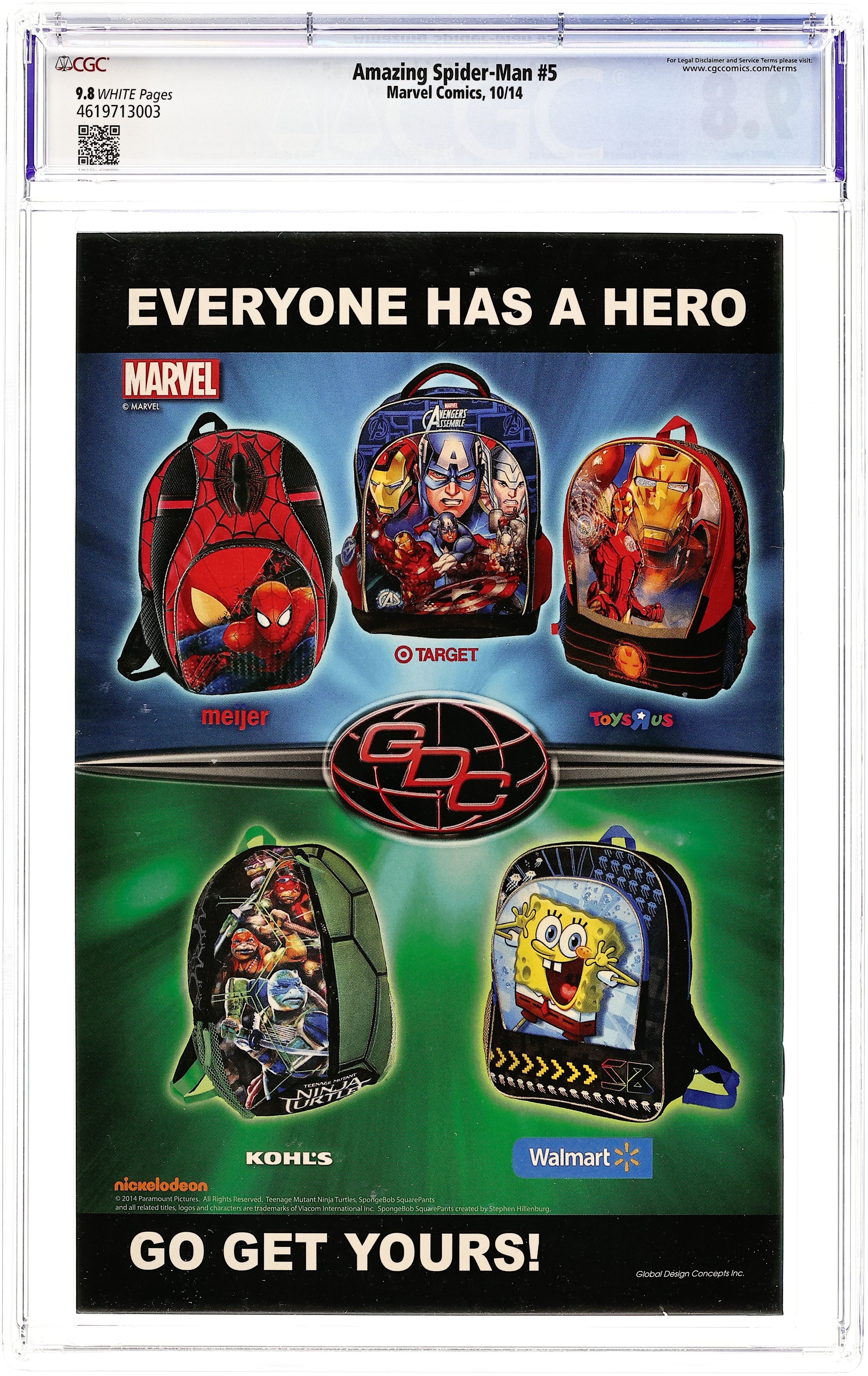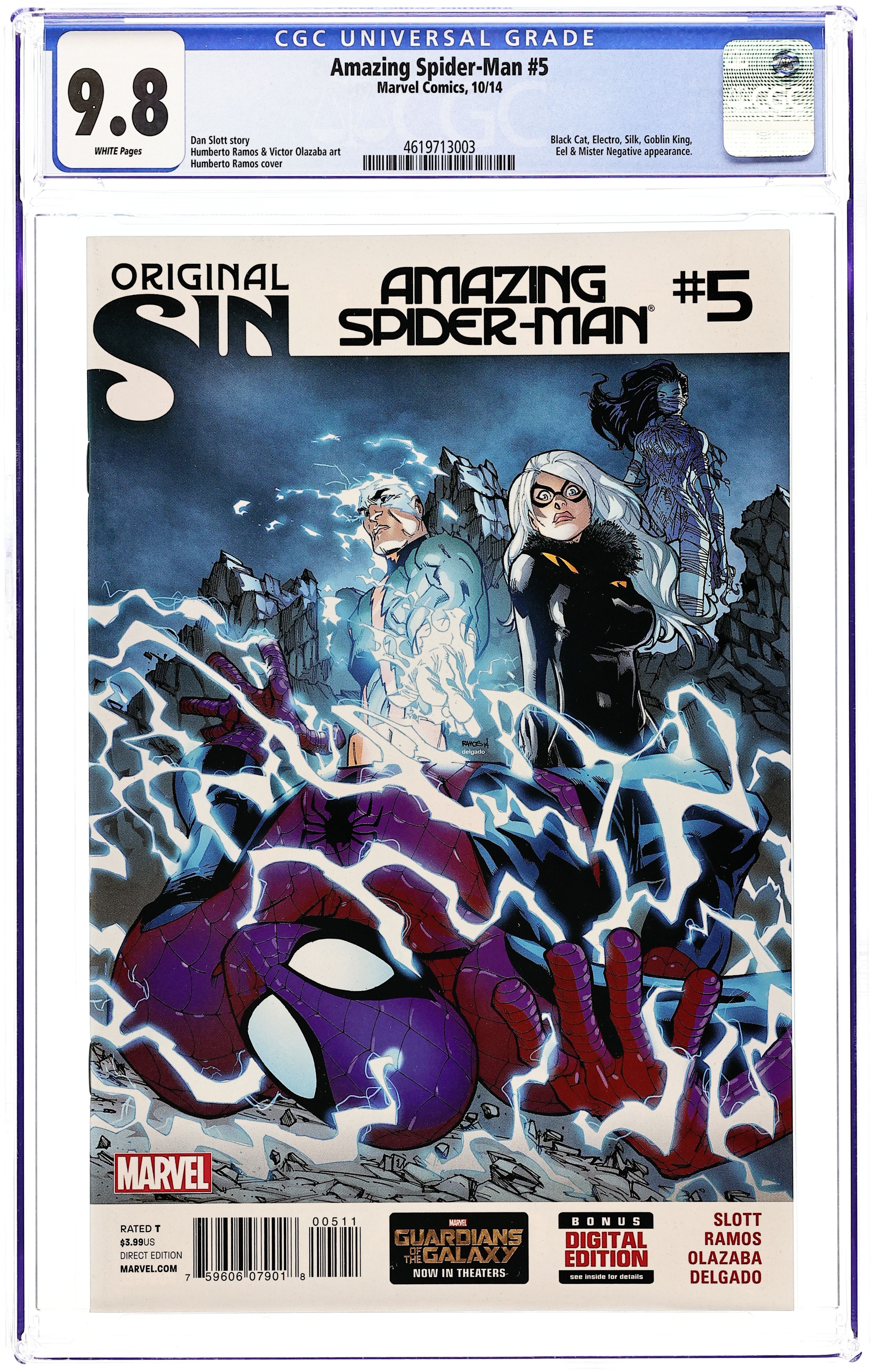 Tags: Marvel Legacy Numbering: Amazing Spider-Man (part 737), Original Sin (Marvel), Spider-Verse (Marvel) (part 0.1), Spider-ManAmazing Spider-Man (2014 3rd Series) 4B CGC 9.8 Ramos 1:10 Variant