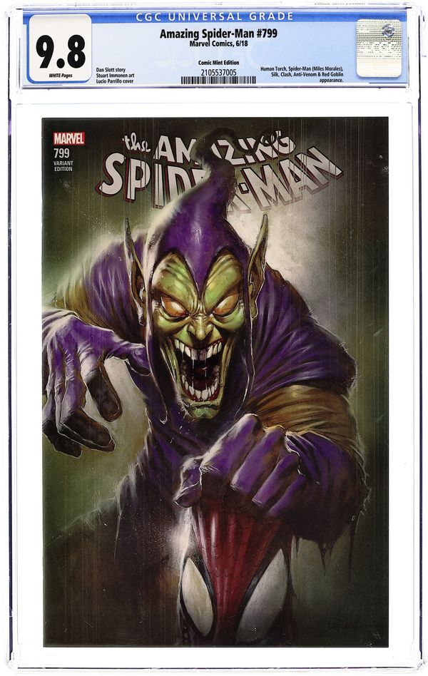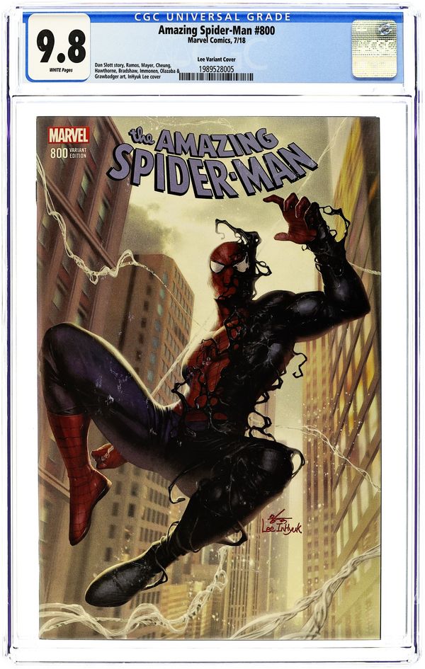 Comic Mint exclusive variant by InHyuk Lee. Written by Dan Slott. Art by Nick Bradshaw, Humberto Ramos, Guiseppe Camuconli, Stuart Immonen, Marcos Martin, Victor Olazaba, Cam Smith and Wade Von Grawbadger. Dan Slott and Stuart Immomen are joined by many of the artists who made the last 10 years of Spider-Man so Amazing! The biggest Peter Parker/Norman Osborn story of all time unfolds over one 80-page story, a scope unmatched in comics! Who lives?! Who dies?! And what scars will Spider-Man bear from here on out?! 92 pages,full color. Rated T