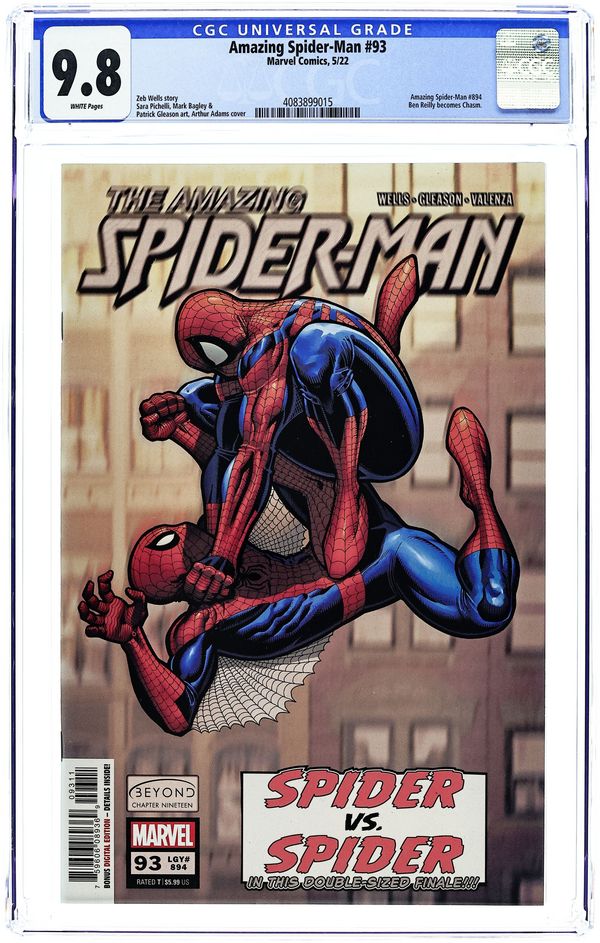 Written by Zeb Wells. Art by Patrick Gleason. Cover by Patrick Gleason. THE BIG FINALE OF "BEYOND"!!! SPIDER-MAN VS. SPIDER-MAN! You may surprise yourself with who you're rooting for. Don't miss the conclusion to one of the most surprising Spider-Stories of the past decade. 52 pages, full color. Rated T Cover price $5.99.