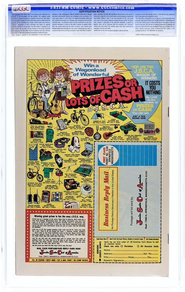 CBCS is a comic book grading company. Comics that are submitted to CBCS are graded by professional graders on a 10 point scale and then sealed inside a hard plastic cotainer to prevent tampering.