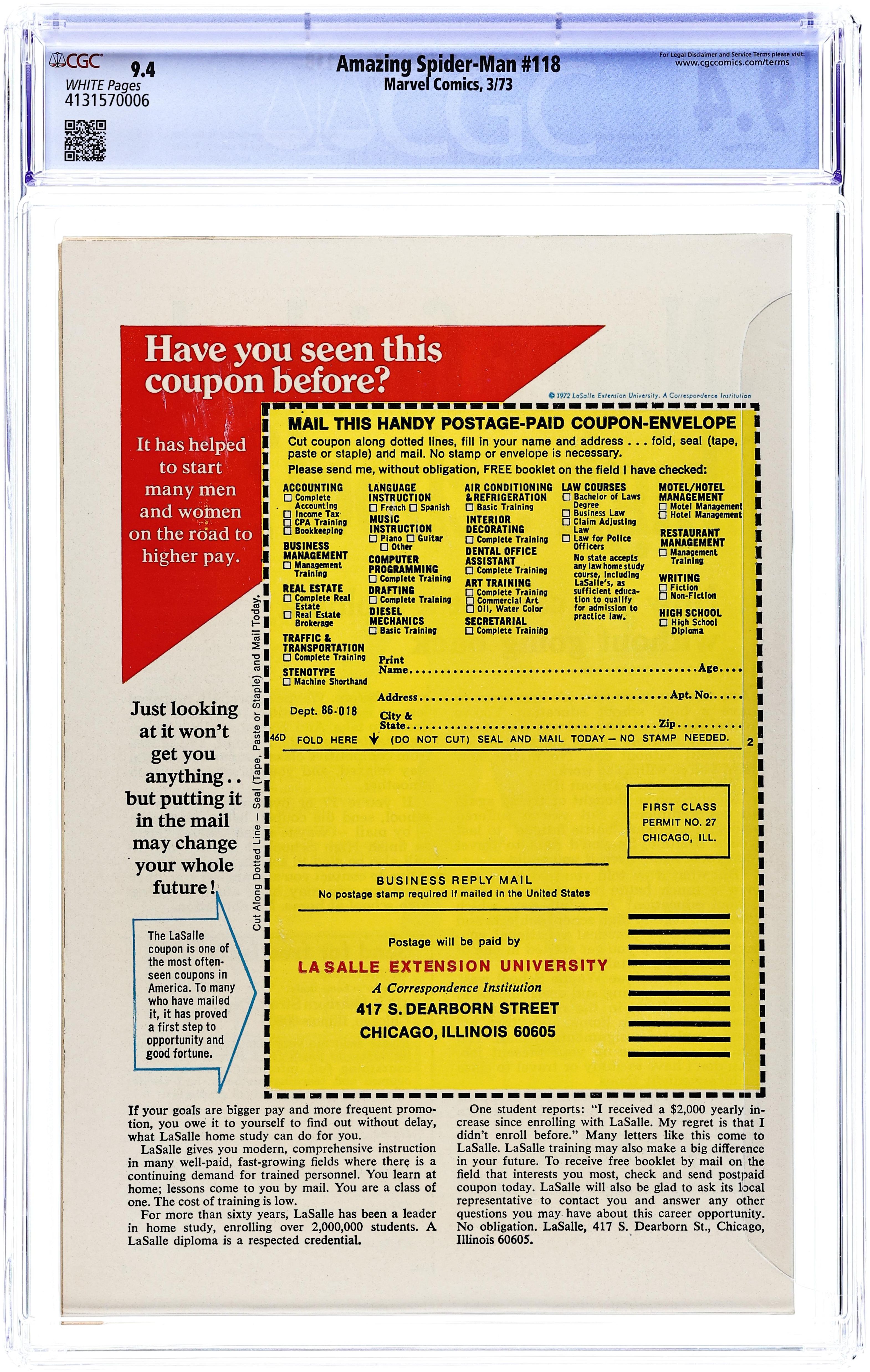 Tags: Marvel Legacy Numbering: Amazing Spider-Man (part 113), Spider-ManAmazing Spider-Man (1963 1st Series) 113 CGC 9.4