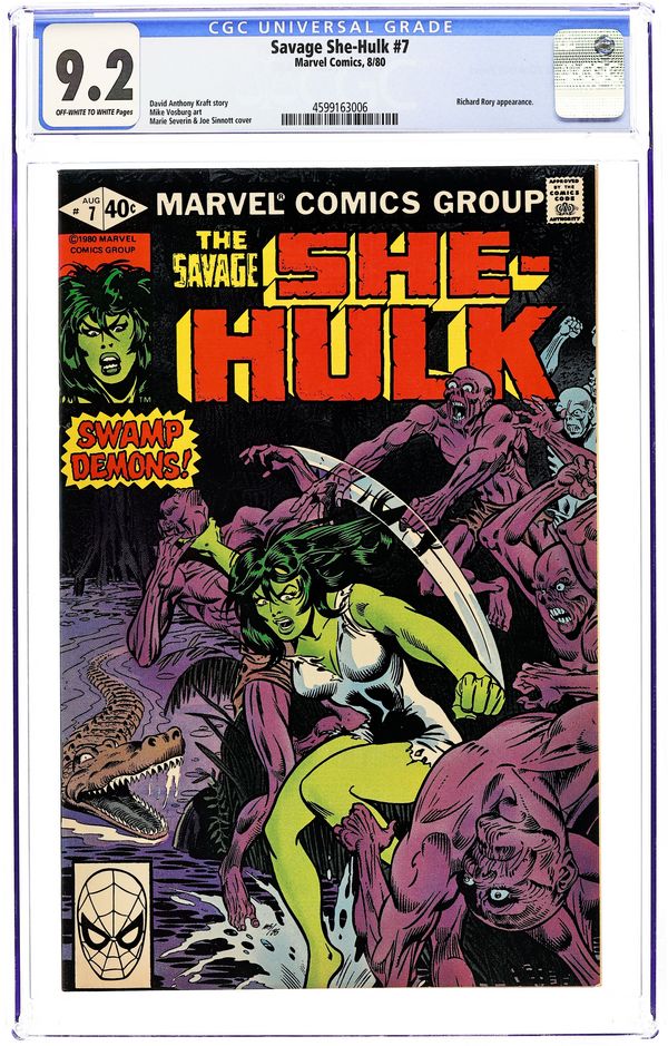 "Richard Rory...Winner!" Part 1 of 2. Story by David Anthony Kraft. Art by Mike Vosburg and Chic Stone. Jennifer runs into Richard Rory, a young man who's no stranger to giant green monsters (see the pages of Man-Thing). Romance is in the air, but so is danger, in the form of...Swamp Demons! Cover price $0.40.