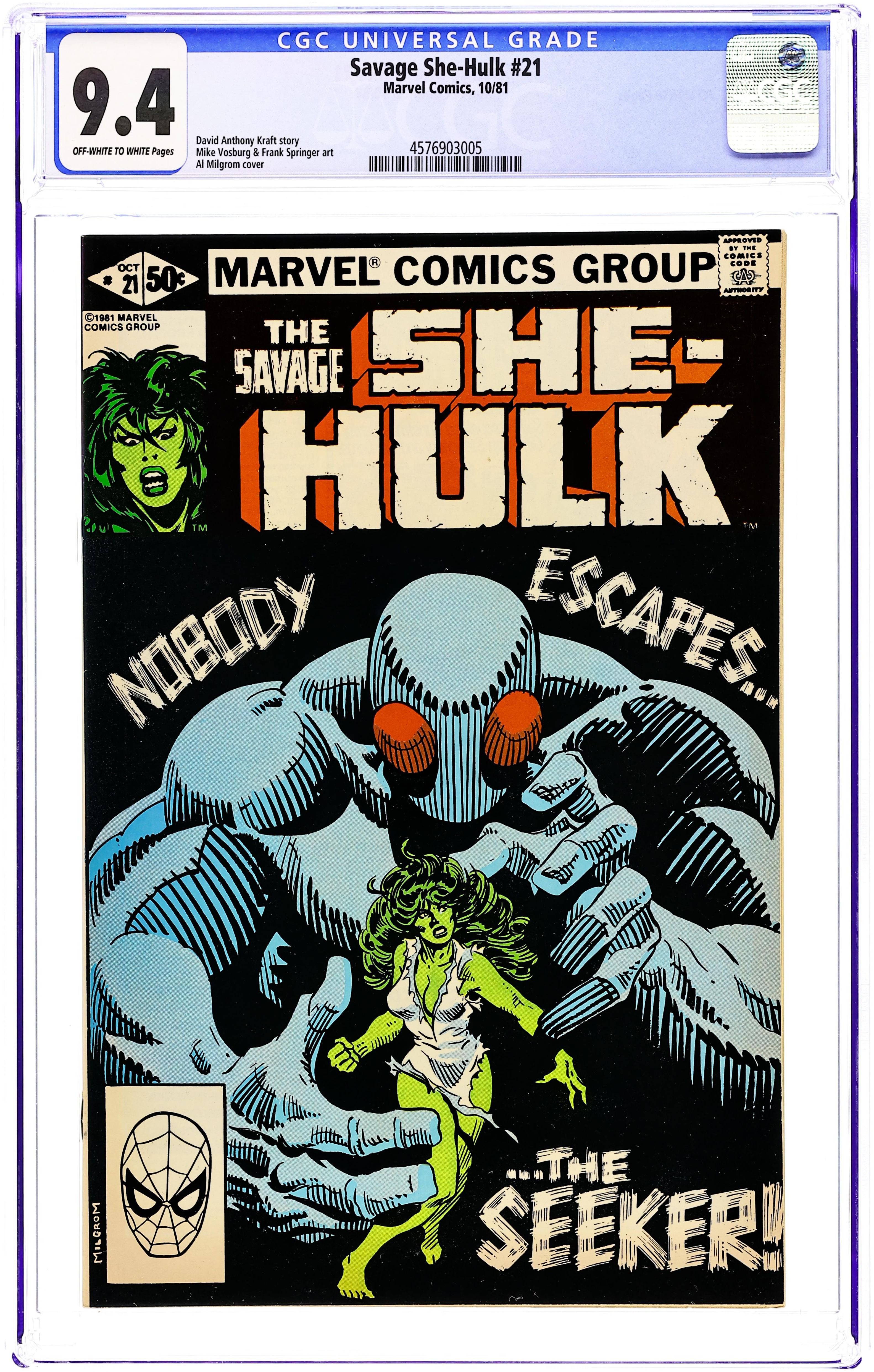 "Arena!" Story by David Anthony Kraft. Art by Mike Vosburg and Frank Springer. As Jennifer's friends try to find her, She-Hulk must face-off against the sinister Seeker in the Arena. Story by David Anthony Kraft. Art by Mike Vosburg and Frank Springer. Cover price $0.50.
