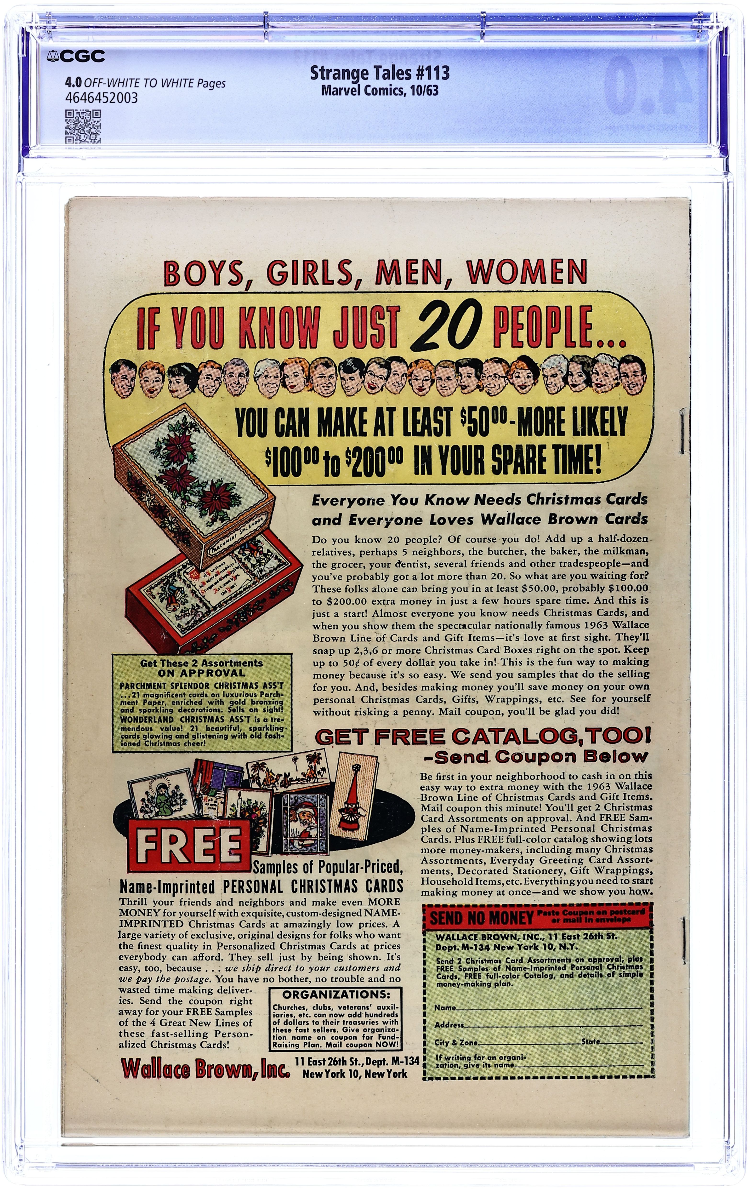 Tags: Marvel Legacy Numbering: Doctor Strange (part 113), Fantastic FourStrange Tales (1951 1st Series) 113 CGC 4.0