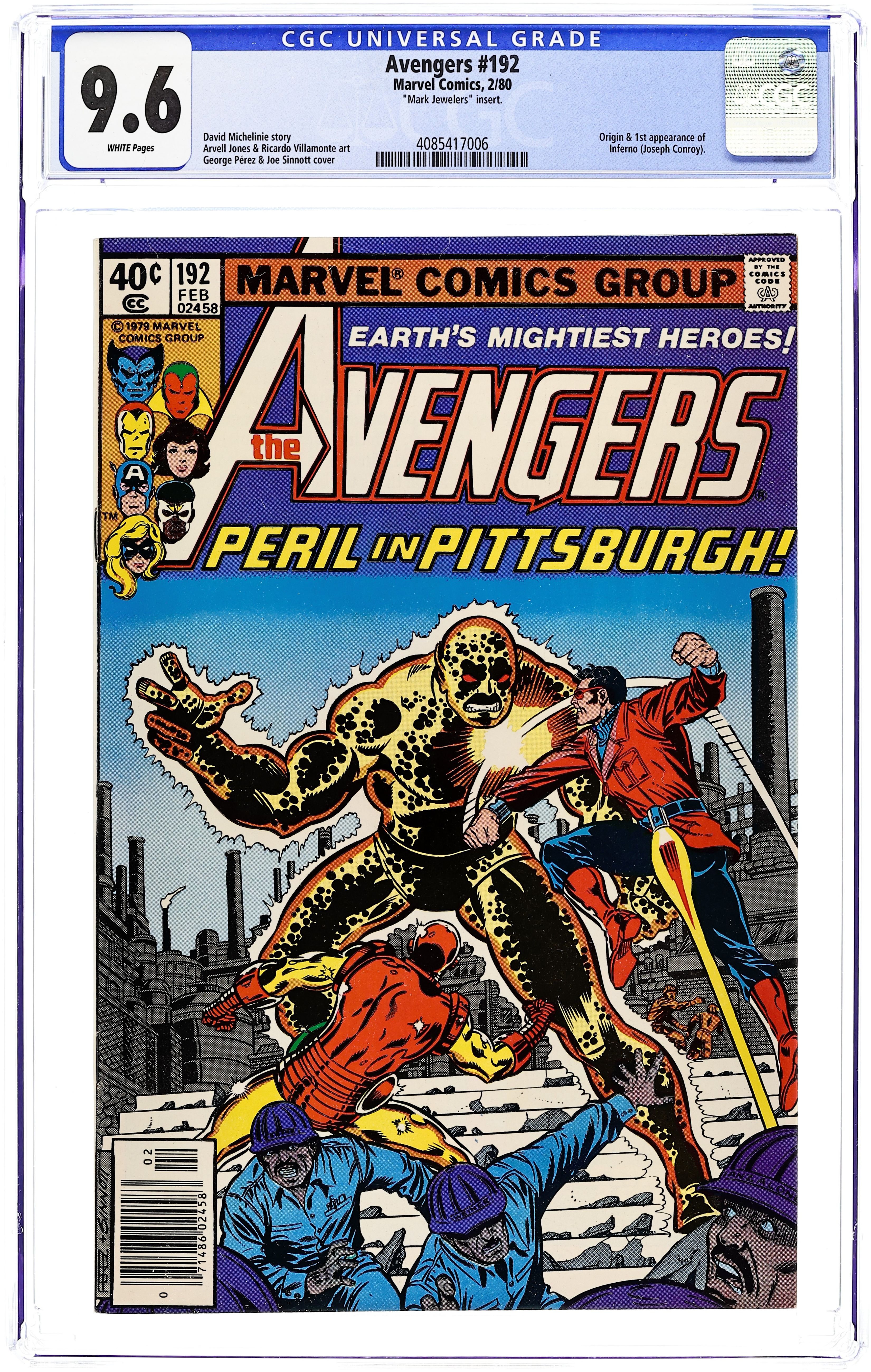 Mark Jeweler Advertisement Insert Variant. The Avengers face Inferno in Pittsburgh in "Steel City Nightmare!" Script by David Michelinie, pencils by Arvell Jones, inks by Ricardo Villamonte. George Perez/Joe Sinnott cover. Cover price $0.40.