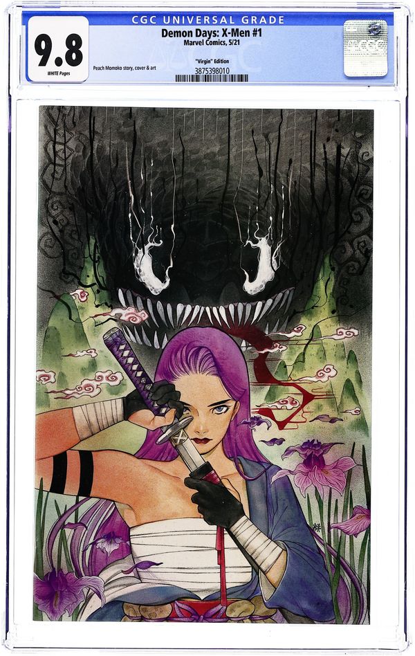 Limited 1 for 200 Retailer Incentive Variant Cover. The Yashida Saga: Prelude - Written, Art and Cover by Peach Momoko. From STORMBREAKER PEACH MOMOKO comes a Marvel story unlike any you've ever seen before! A wandering swordswoman with a psychic blade arrives at village that's being targeted by demons. One demon is black and white with a terrifying red tongue and another may be the strongest demon there is! In the stunning kick-off issue of this prestige quarterly story, you'll see a revolutionary reimagination of the Marvel Universe that could only come from Peach Momoko. Ready your katana and enter a mysterious world of demons, monsters, mutants, and magic! Book ONE of FIVE of the DEMON DAYS saga! 36 pages, full color. Rated T+ Cover price $4.99.