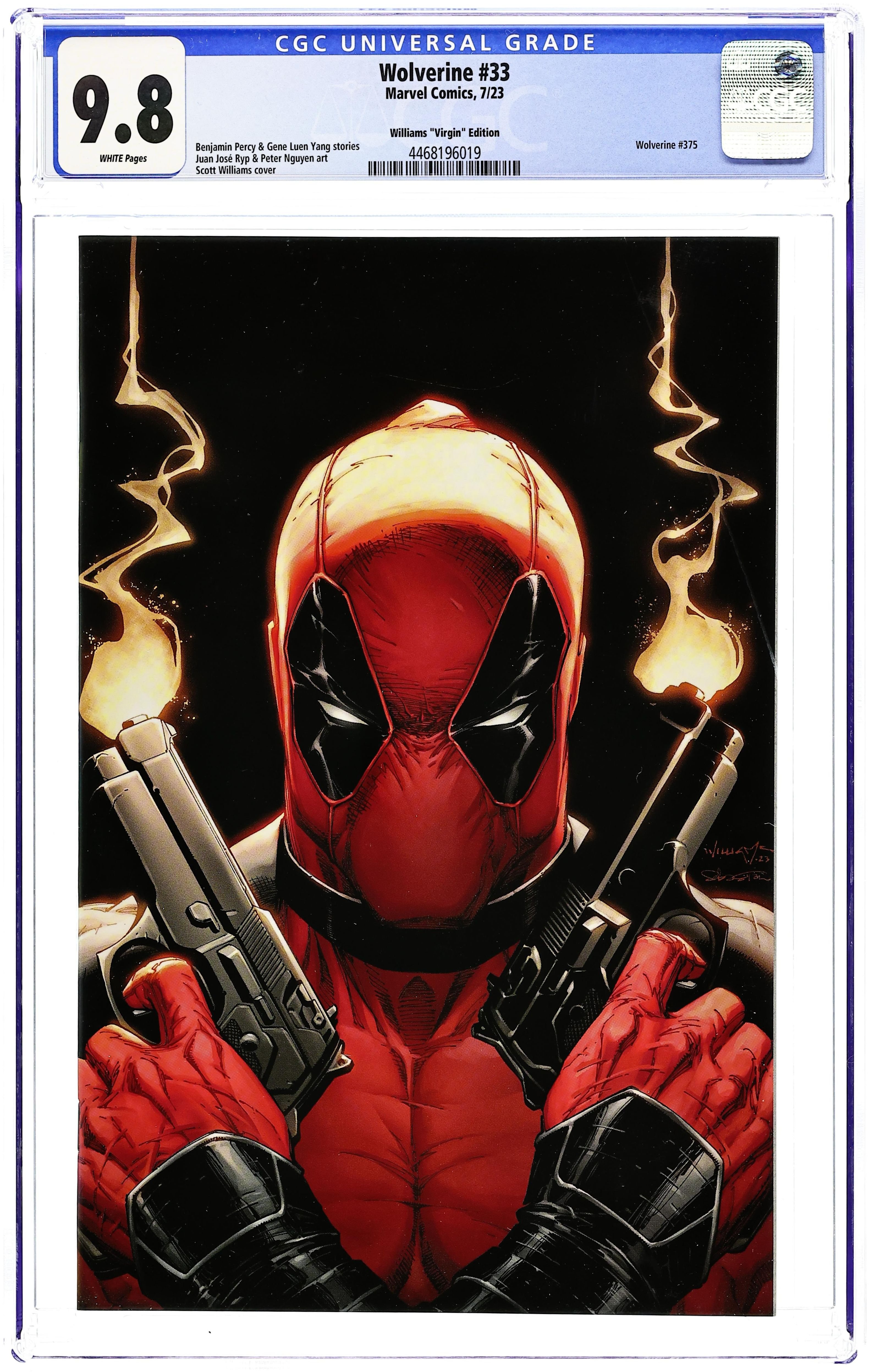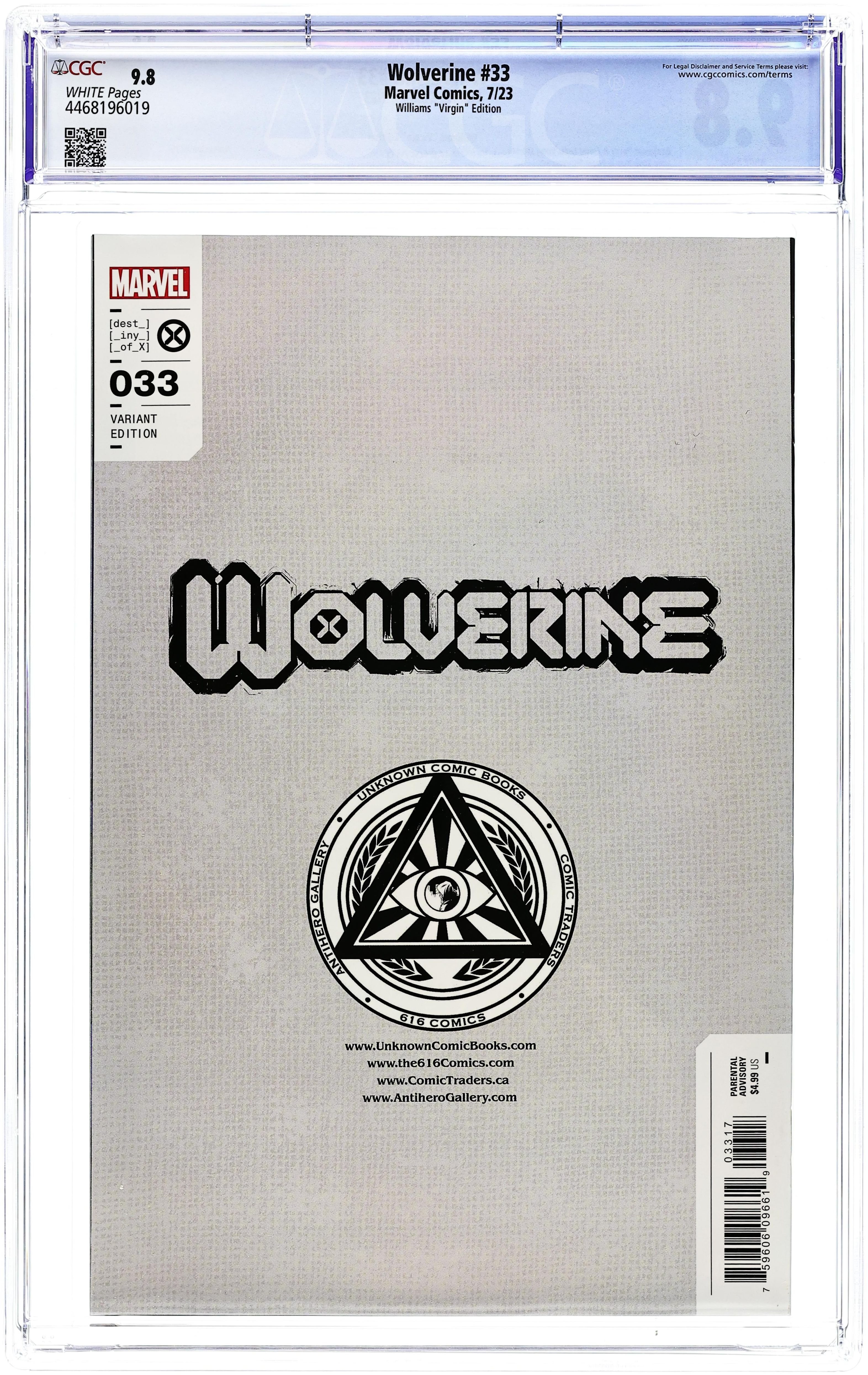 Comics Illuminati (Unknown Comics, The 616, Comic Traders, and Antihero Gallery) exclusive Virgin Cover by Scott Williams. Written by Benjamin Percy. Art by Juan Jose Ryp. WEAPONS OF X! The landmark Weapons of X storyline continues as BEAST makes a critical move against WOLVERINE. But…who is moving against Beast? Not who you think! And how does MAVERICK play into this conflict? PLUS: An all-new backup adventure featuring WOLVERINE and SISTER DAGGER, by Gene Luen Yang and Peter Nguyen! 36 pages, full color. Rated Parental Adv.