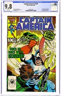 Steve Rogers returns as Cap in "Seeing Red," a 68-page giant issue. Story by Mark Gruenwald. Art by Kieron Dwyer and Al Milgrom. The Red Skull is back! And he tricks John Walker into fighting Steve Rogers! Can the former shield-slinger defeat John Walker, stop the Red Skull, and win back his old uniform and shield? Back up story: "Resurrection" Story by Mark Gruenwald. Art by John Byrne and Joe Marzan Jr. Following the events of Captain America 300, Armin Zola transferred the mind of the Red Skull into a new cloned body. (Note: This issue includes six pages of pin-ups that feature Captain America's past and present partners, the women in Steve Rogers' life, and the five other men who have worn the uniform of Captain America. Art by John Buscema, Al Milgrom, Ron Frenz, Joe Sinnott, and Tom Morgan.) Cover price $1.75.