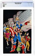 Guest-starring Nick Fury in "Changing of the Guard" Story by Mark Gruenwald. Art by Kieron Dwyer and Al Milgrom. Steve Rogers is Captain America once again! Cap joins Nick Fury in deactivating a secret SHIELD work site, when suddenly the Mandroid robots come alive and attack the pair of heroes. Meanwhile, John Walker appears to have been assassinated by one of the Watchdogs. 36 pages Cover price $0.75.