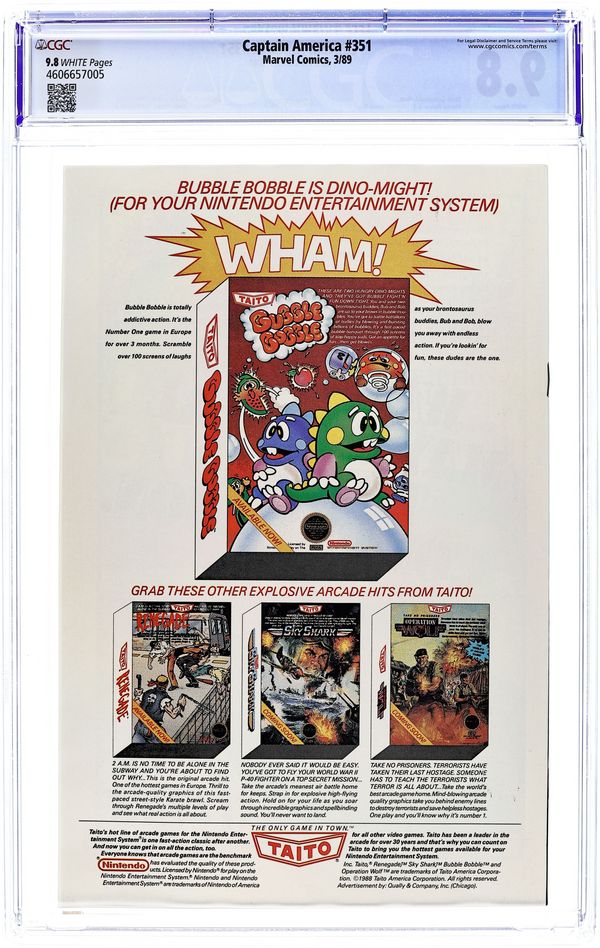 "Bones of Contention" Part 2 of 6. Story by Mark Gruenwald and Kieron Dwyer. Art by Kieron Dwyer and Danny Bulanadi. Cover by Kieron Dwyer and Al Milgrom. Captain America descends deep into the catacombs of Manhattan to trace an emergency signal from Diamondback! Will Cap rescue her in time and then find the first jewel of the bloodstone? Back up story: "Siege" Part 1 of the Night of the Scourge. Story by Mark Gruenwald. Art by Mark Bright and Don Hudson. Scourge breaks into the home of the Power Broker (aka Curtiss Jackson). 36 pages Cover price $1.00.