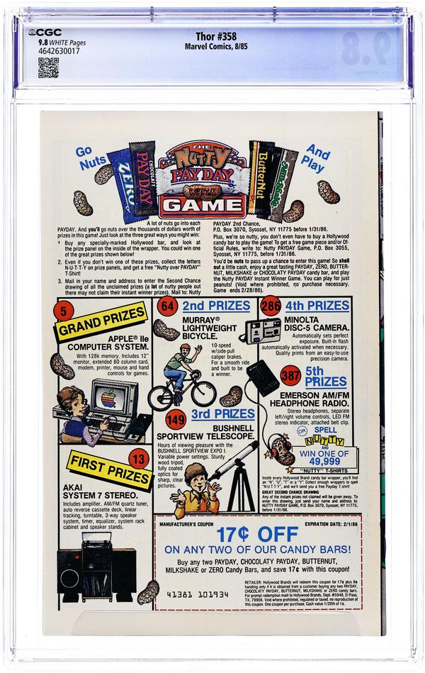 Cover by Walt Simonson. "When Dalliance Was In Flower, or, Take the Cash and Let the Credit Go," script and art by Walt Simonson; Lorelei, at the behest of Loki, bewitches Thor; Beta Ray Bill and Sif face down the GLF until the group learns that they are working for a Russkie (Titanium Man) and turn on him; Thanks to a little spell by Heimdall, Lorelei falls for Loki. Appearances by Volstagg. Hogun, Fandrall, and Heimdall. Bullpen Bulletins. 36 pgs., full color. $0.65. Cover price $0.65.