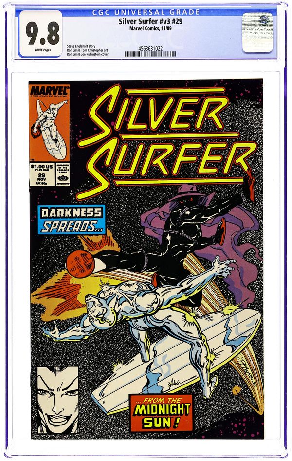 Direct Edition. Special Giant-Sized Issue. Kree/Skrull war. "Back to Black...?" Story by Steve Englehart. Art by Ron Lim and Joe Rubinstein. The Kree and Skrull Empires renew their war that has gone on for countless generations, and the Silver Surfer is caught in the middle of all the schemes and double-dealings. 48 pages. Cover price $1.50.