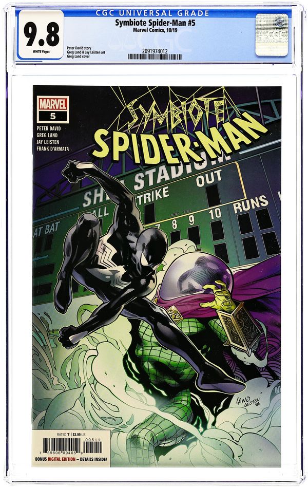 Written by Peter David. Art and Cover by Greg Land. The culmination of Peter David and Greg Land's blockbuster series! MYSTERIO makes his final play for the symbiote! And is this the beginning of the end for Spidey and BLACK CAT? 28 pages, full color. Rated T Cover price $3.99.