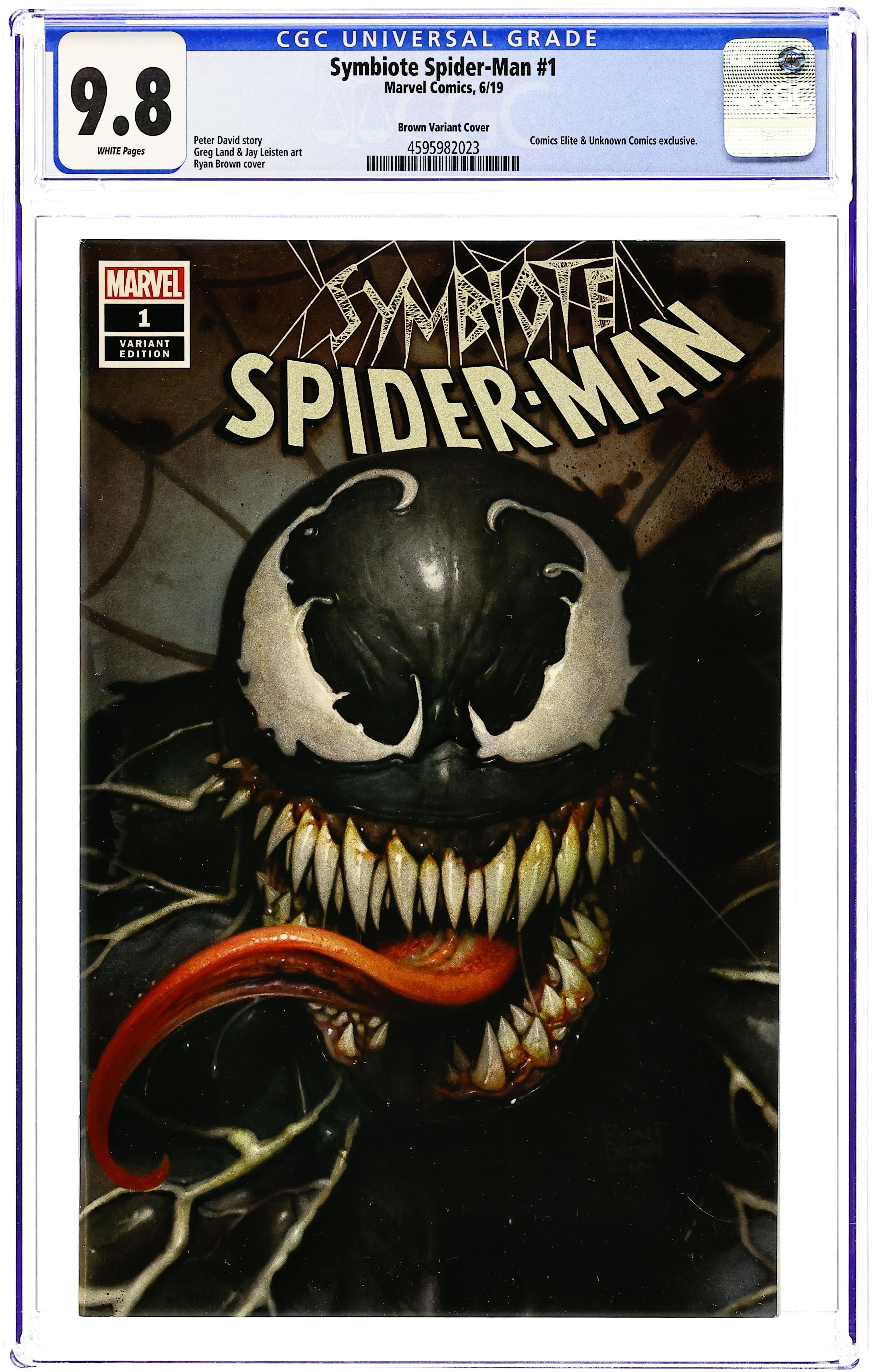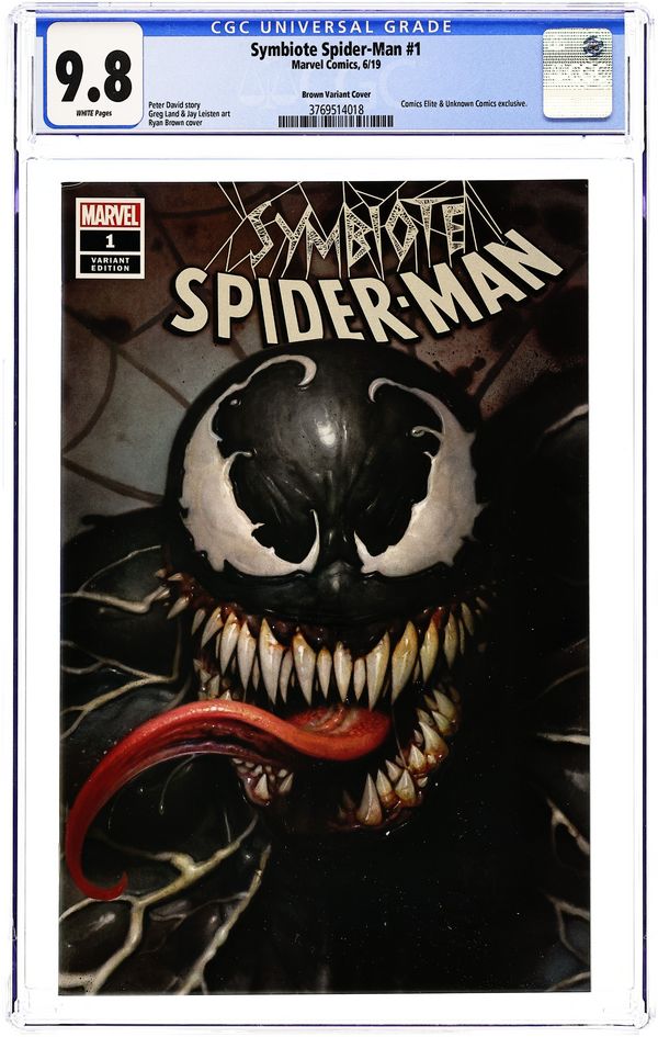 Comics Elite/Unknown Comics exclusive variant by Ryan Brown. Written by Peter David. Art by Greg Land and Iban Coello. Everyone knows that Spider-Man's infamous black suit would someday become the wicked web-slinger called Venom - but what happened BEFORE Peter Parker discovered the black suit's sinister secret? Find out in this dynamic tale from comics legends PETER DAVID and GREG LAND! Set during the original 'Black Suit Saga,' this is an all-new tale that pits the wall-crawling wonder against that most mystifying of menaces…MYSTERIO! 36 pages, full color. Rated T