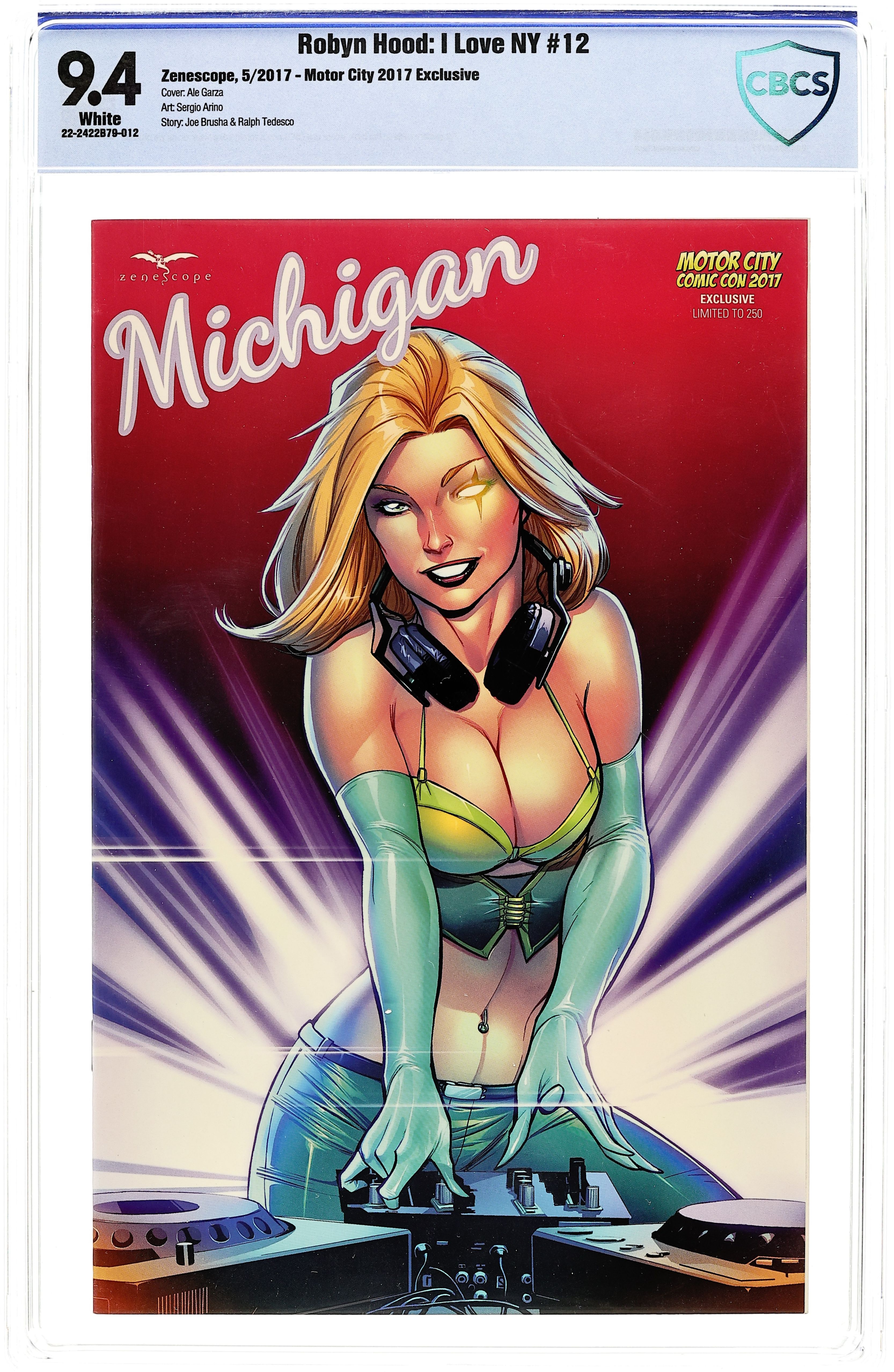 Motor City Comic Con 2017 Exclusive Variant Cover by Ale Garza - limited to 250 copies. Written by Joe Brusha and Lou Iovino. Art by Sergio Arino, Riveiro and Daniel Maine. FINAL ISSUE! End Game Robyn barely escaped with her life after facing Alina Rose. But before her wounds or her confidence have time to heal, she's forced to strike back to save the city from an evil that threatens to consume it. This series-ending battle takes Robyn to the brink and sets the stage for what will become the next chapter in her life ... if she can survive. 32 pages, full color. Rated T