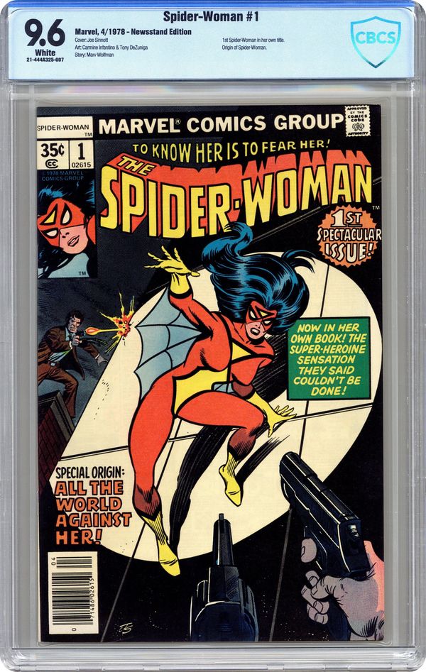Cover art by Joe Sinnott. ...A Future Uncertain!, script by Marv Wolfman, pencils by Carmine Infantino, inks by Tony DeZuniga; Spider-Woman tries to get her life together after her childhood experiences with the High Evolutionary and her recent break with Hydra; origin story. 32 pgs. $0.35. Cover price $0.35.
