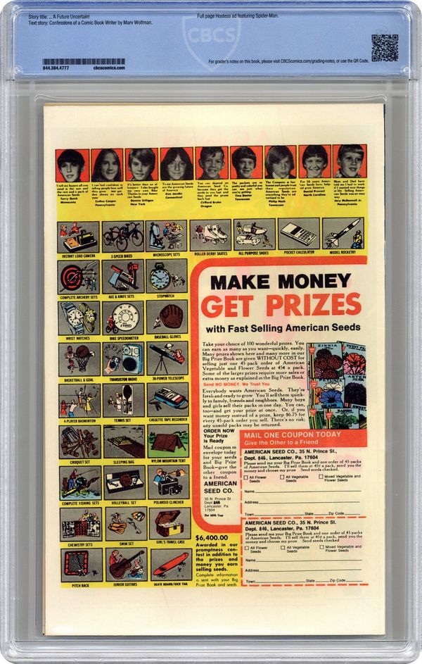 Simplified Spider-Man stories. 11 page origin story, "Spider-Man is Born!" Script by Jean Thomas (with help from Bill Effros, based on the original story by Stan Lee), pencils by Winslow Mortimer, inks by Mike Esposito. Also in this issue: "Spidey Signs Up," "Spidey Meets the Spoiler" (based on the Electric Company script by Tom Whedon), and "Help! I'm Spider-Man!" (based on a story by Byron Preiss). John Romita Sr. cover. Cover price $0.35.
