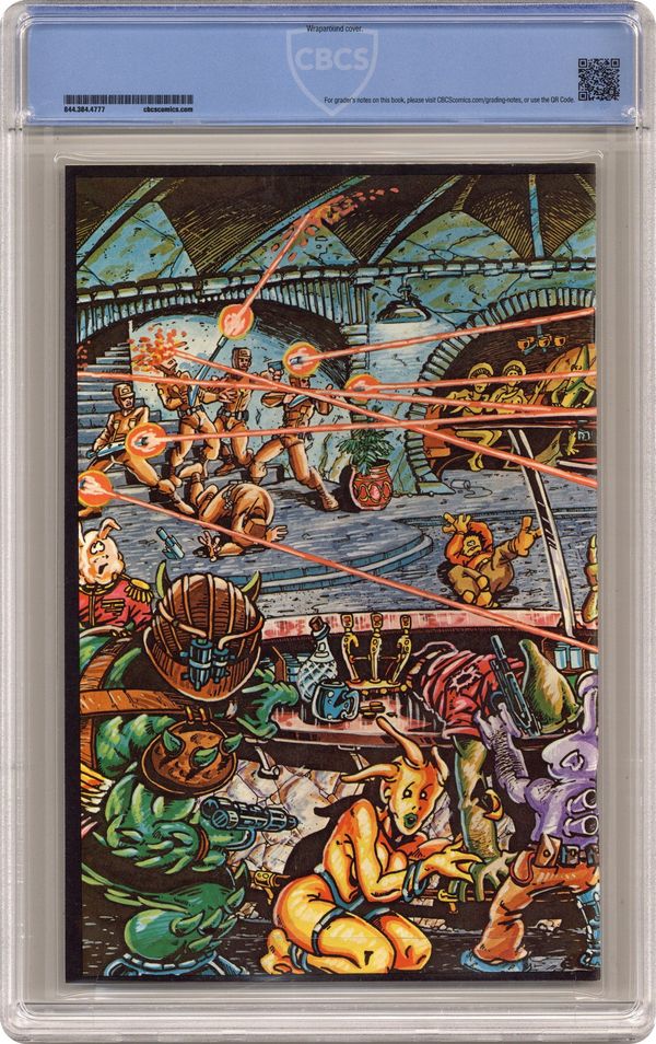 The original series that introduced the Turtles to the world. An errant time traveler accidentally sends the Turtles and herself through time, where they meet Dave Sims Cerebus the Aardvark. Story, art and cover by Dave Sim, Kevin Eastman & Peter Laird; backgrounds by Gerhard. Black and white; 32 pages. Cover price $1.50.