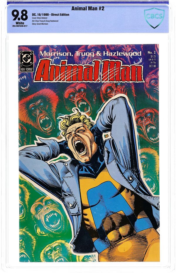 A beast stalks the streets of San Diego...just the sort of prey Animal Man was born to stalk in the concrete jungle. Can Buddy Baker pass the first true test of his powers? Written by Grant Morrison, with art by Chas Truog and Doug Hazlewood. Cover by Brian Bolland. New Format. Cover price $1.25.