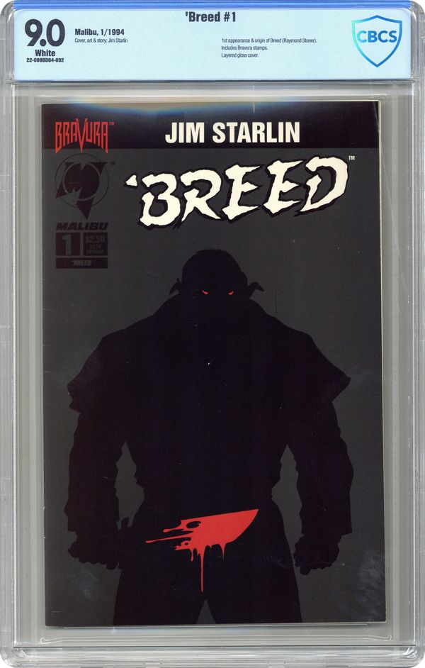 Cover by Jim Starlin. Untitled story, script by Jim Starlin, art by Jim Starlin, Jeanne Dupuis, and Catie Jellinghaus; Rachel dies. Story continues in Breed II. Card to collect the stamps for the Bravura Gold Stamp program; directions for the contest. Kara Lamb discusses various Bravura series. 36 pgs., full color. $2.50. Cover price $2.50.