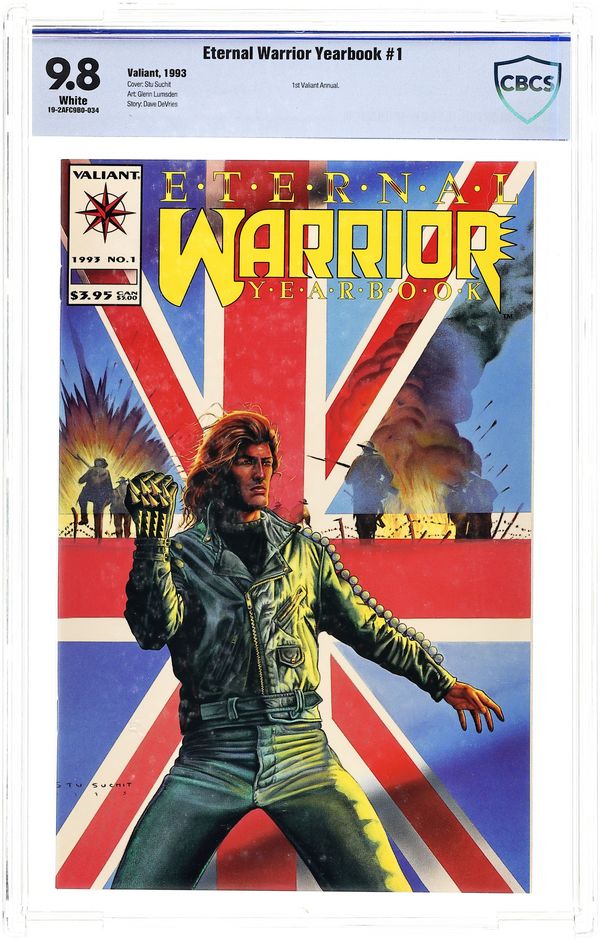 Gold Embossed Edition - the word "Warrior" has raised, gold lettering. According to the ValiantFans.Com website, the Gold Embossed version was created to replace copies of the dealer incentive (gold flat version) that were accidentally distributed for re-orders as if it were the regular version.