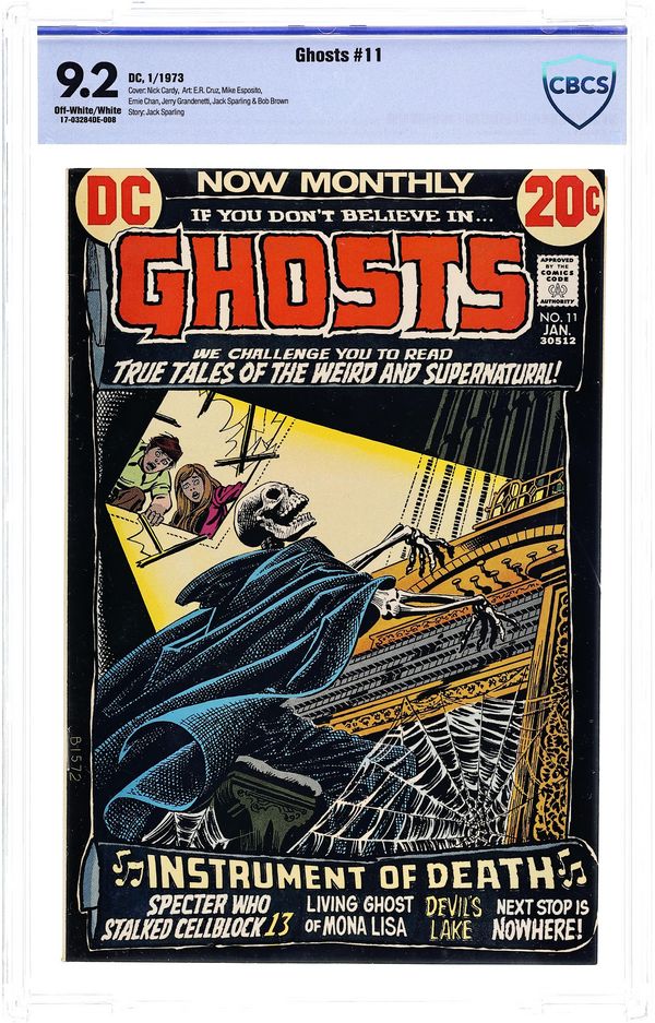 Cover by Nick Cardy. Stories by unknown. Art by E.R. Cruz, Ernie Chan, Jerry Grandenetti, Bob Brown, Jack Sparling and Mike Esposito. If you don't believe in ghosts...we challenge you to read true tales of the weird and supernatural! In this issue: "The Devil's Lake" with art by E.R. Cruz; "Next Stop Is Nowhere" with art by Ernie Chan; "The Specter Who Stalked Cellblock 13" with art by Jerry Grandenetti; "The Instrument of Death!" with art by Bob Brown and Mike Esposito; 1-pager "The Death Circle" by Jack Sparling; and 1-page article "The Living Ghost of Mona Lisa" (with Leonardo da Vinci art). 32 pages, full color. Cover price $0.20.