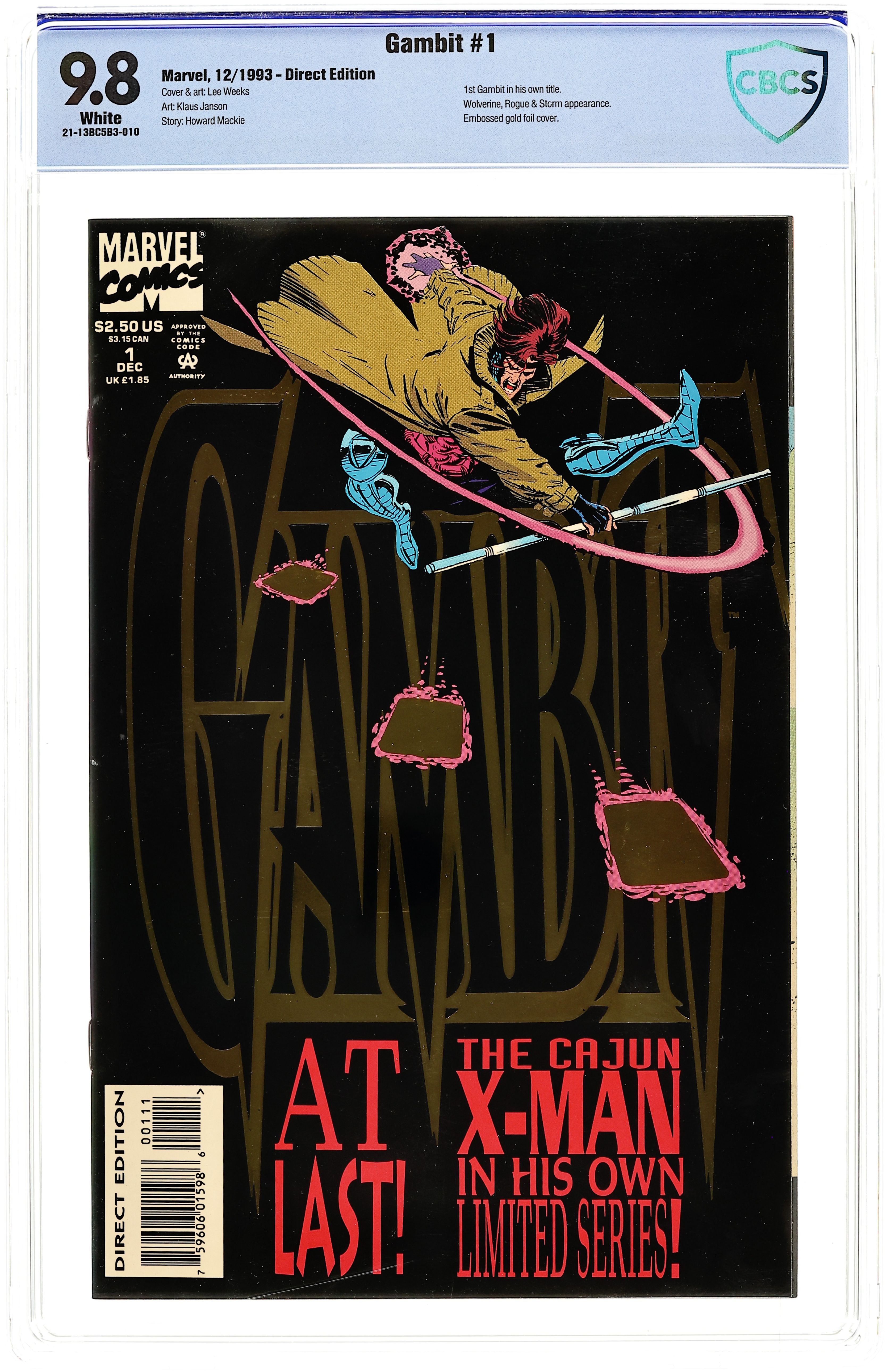 Direct Edition. Tithing, script by Howard Mackie, pencils by Lee Weeks, inks by Klaus Janson; Henri LeBeau sneaks into X-Mansion and tells his young step-brother, Gambit, that the time of the tithing has come and he is needed in New Orleans as the Assassins Guild is trying to break the old pacts; As they are speaking, Henri is cut down by an assassins arrow; Gambit gives chase and discovers that the killer is Julien, the "dead" brother of his wife; Learning that Bella Donna is also alive (she was "killed" in X-Men (Marvel, 1991 series) #8) Gambit and Rogue prepare to leave for New Orleans. 36 pgs., full color. $2.50. Cover price $2.50.