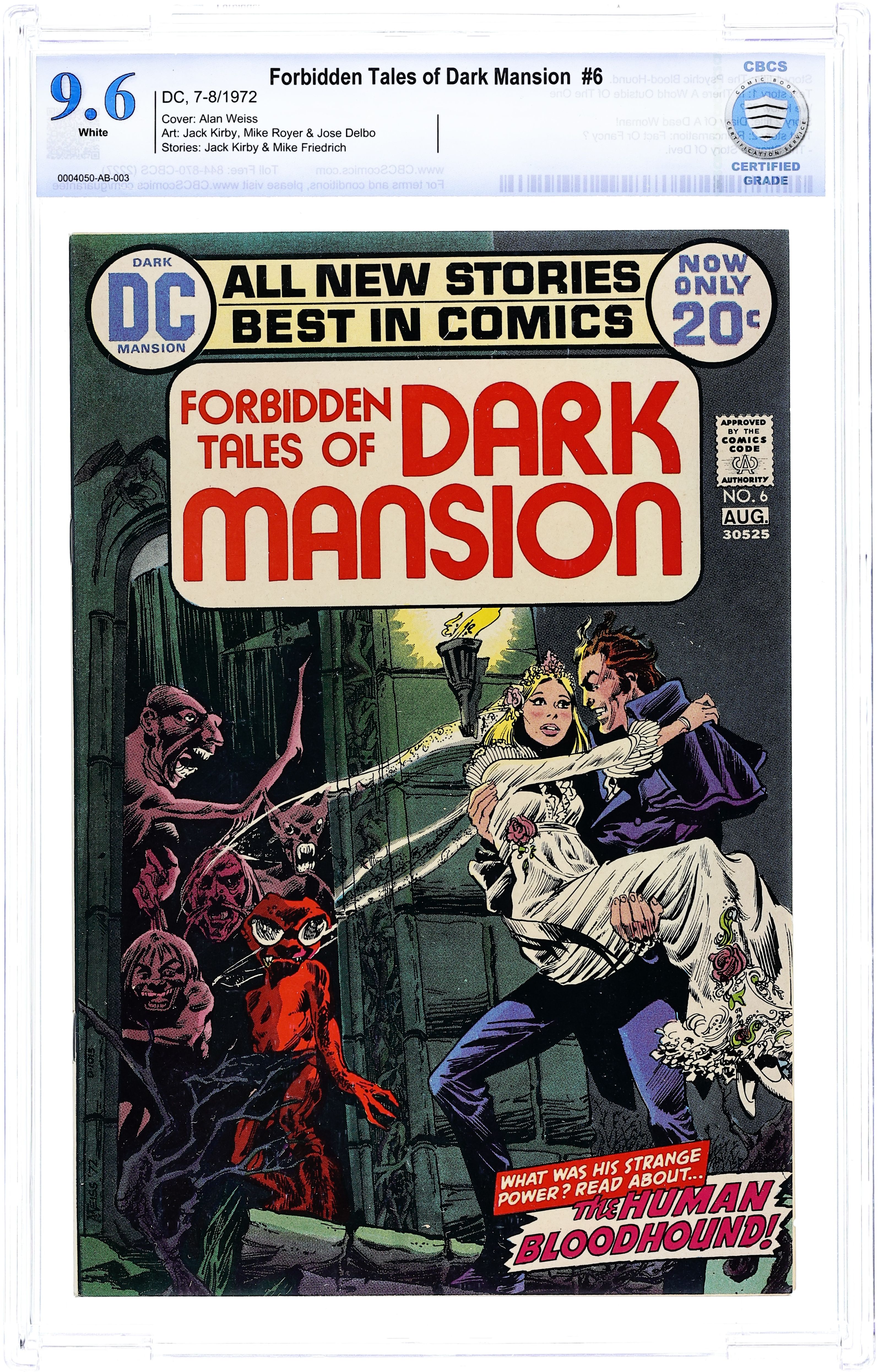 With this issue, the comic changes to an anthology type format featuring suspenseful and spooky stories, all part of the world of the Dark Mansion, a world of the unknown, the suspenseful, and the strange. This issue features "The Psychic-Blood-Hound," (Art by Jack Kirby), a tale of man who by simple contact can get visual flashes of events that involve the subject, and "Diary of a Dead Woman," (Script by Mike Friedrich & art by Jose Delbo), in which a woman who lives a miserable existence in her home finds solace with a mysterious man in a mansion. Issue also has "Reincarnation: Fact or Fancy? The Strange Story of Devi" text feature. Cover price changes to 20 cents. Cover price $0.20.