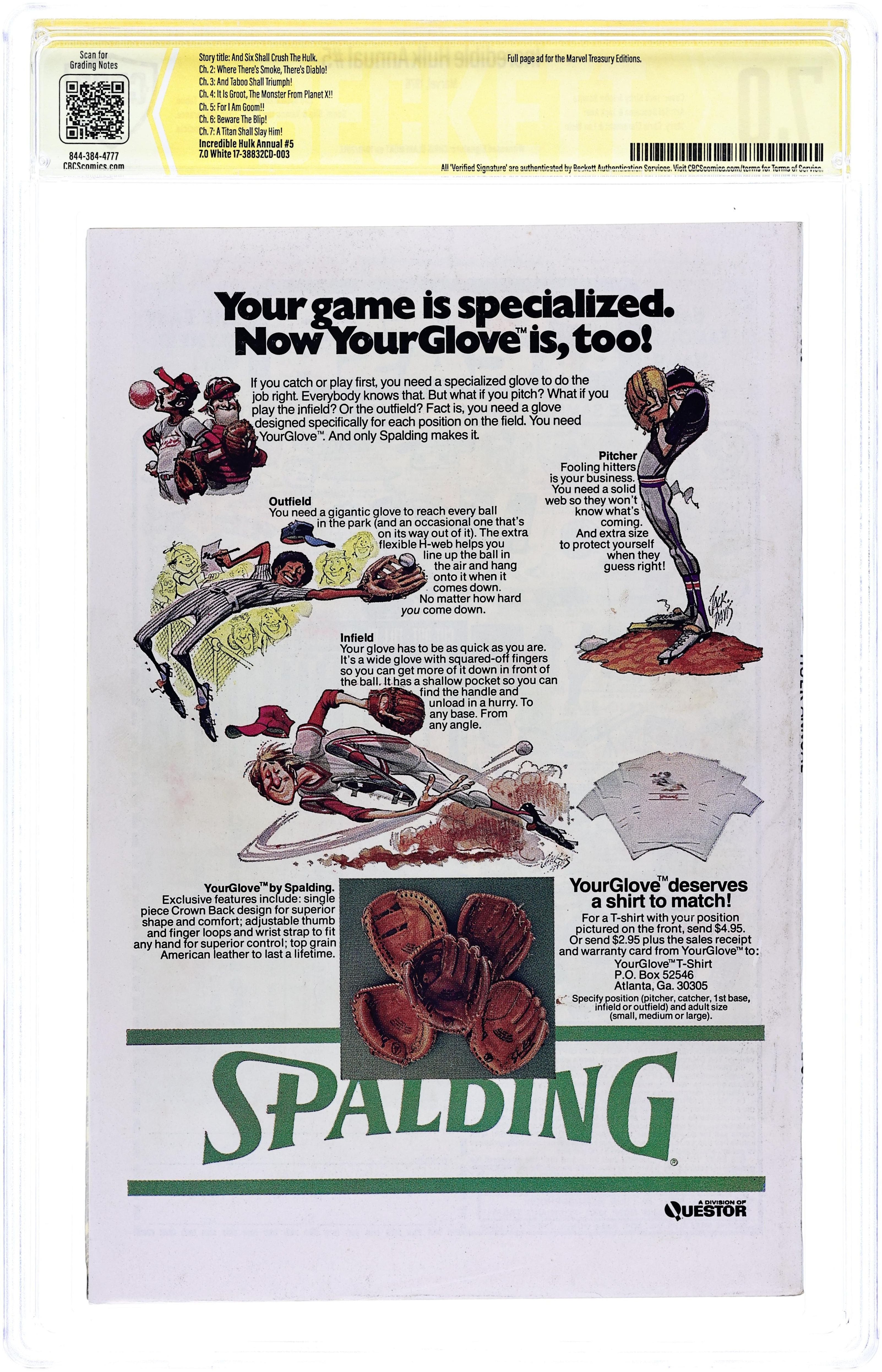 - Witnessed Signatures: Al Milgrom on 10/8/2021, Bob McLeod and Jim Shooter on 10/22/2021 and Lou Ferrigno on 11/6/2021 Direct Edition