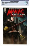 2nd Printing. Written by Elliott Kalan. Art and Cover by Andrea Mutti. Four years ago, a masked slasher began stalking the streets of New York City. Maniac Harry is inhuman, unkillable and unstoppable. Which is why the authorities' solution has been to ignore him, and let New Yorkers adapt to a world where death can strike at any mo-ment. When Maniac Harry starts killing his way through the subway system, trauma-haunted political aide Gina Greene and disgraced NYPD detective Zelda Pettibone become determined to go rogue and destroy him. But how can they fight a monster when they can't fight City Hall? From Emmy Award-winning writer Elliott Kalan (The Daily Show, MST3K, Spider-Man & The X-Men) and artist Andrea Mutti (Port of Earth, Hellblazer) comes the horrifying story of what happens when terror becomes the new normal. A frightening, thought-provoking, sometimes funny, always timely tale of murder, obsession and urban living. 32 pages, full color. Cover price $4.99.