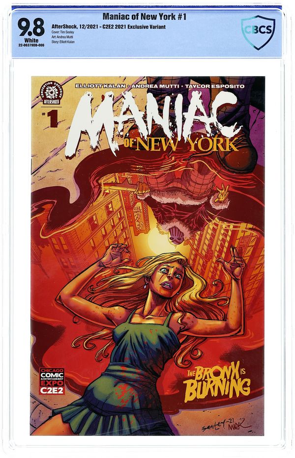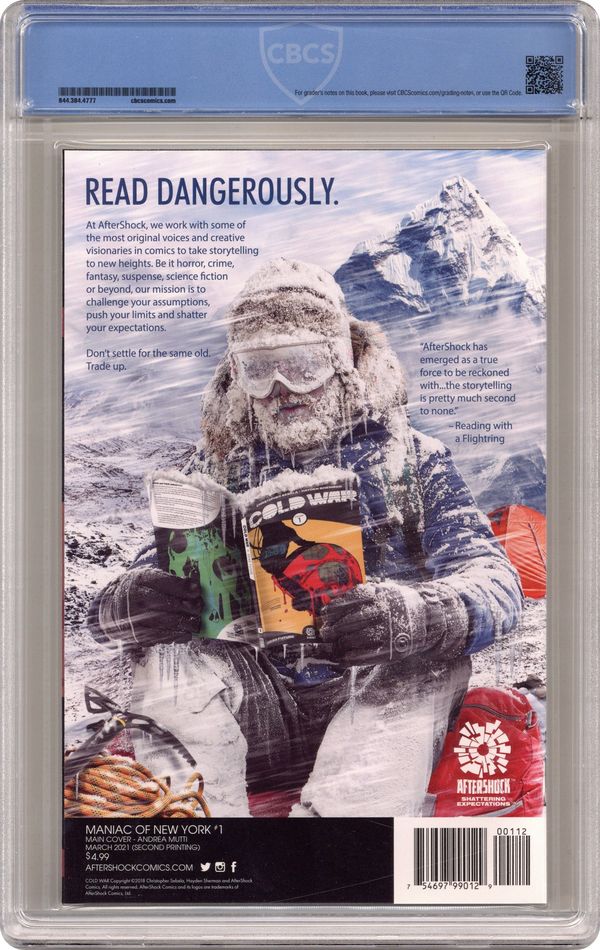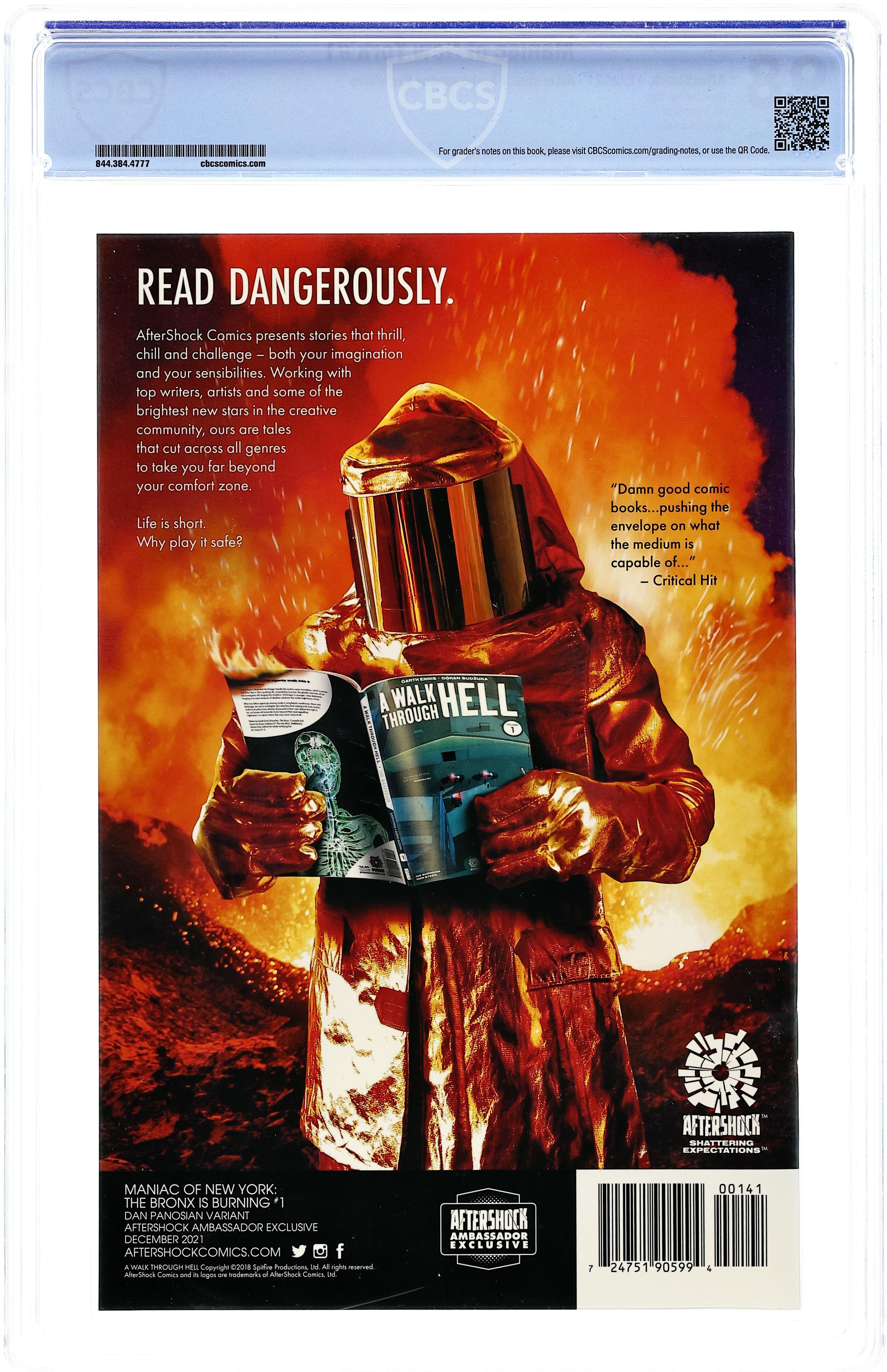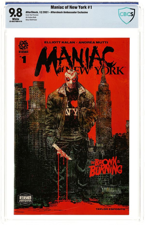 Aftershock Ambassador Exclusive Variant Cover by Dan Panosian. Written by Elliott Kalan. Art by Andrea Mutti. The bloody saga of Maniac Harry continues! After the tragedy of The Death Train, Detective Zelda Pettibone and mayoral aide Gina Greene have lost the trail of the Maniac - and the support of the city. Copycats are springing up, tensions are high and traffic is a nightmare. So, what happens when your favorite unstoppable, mindless killer resurfaces in a Bronx high school? Can Zelda and Gina get there before Maniac Harry adds to his body count? Will the stu-dents tear their attention away from their phones long enough to notice there's a mon-ster in the halls? Writer Elliott Kalan and artist Andrea Mutti return for the next chapter of the hit horror-satire that's somehow even scarier than the world we actually live in! 32 pages, full color.