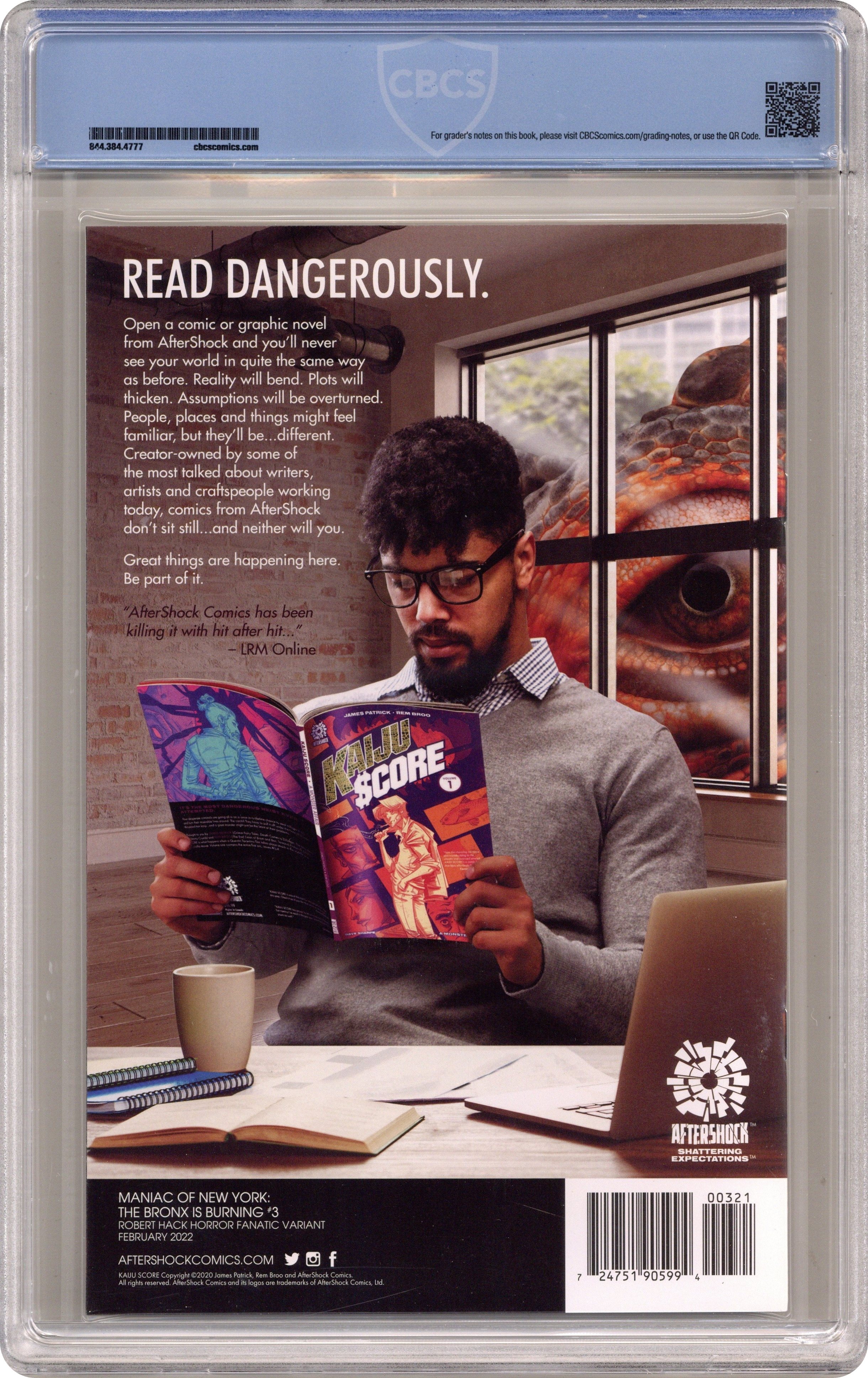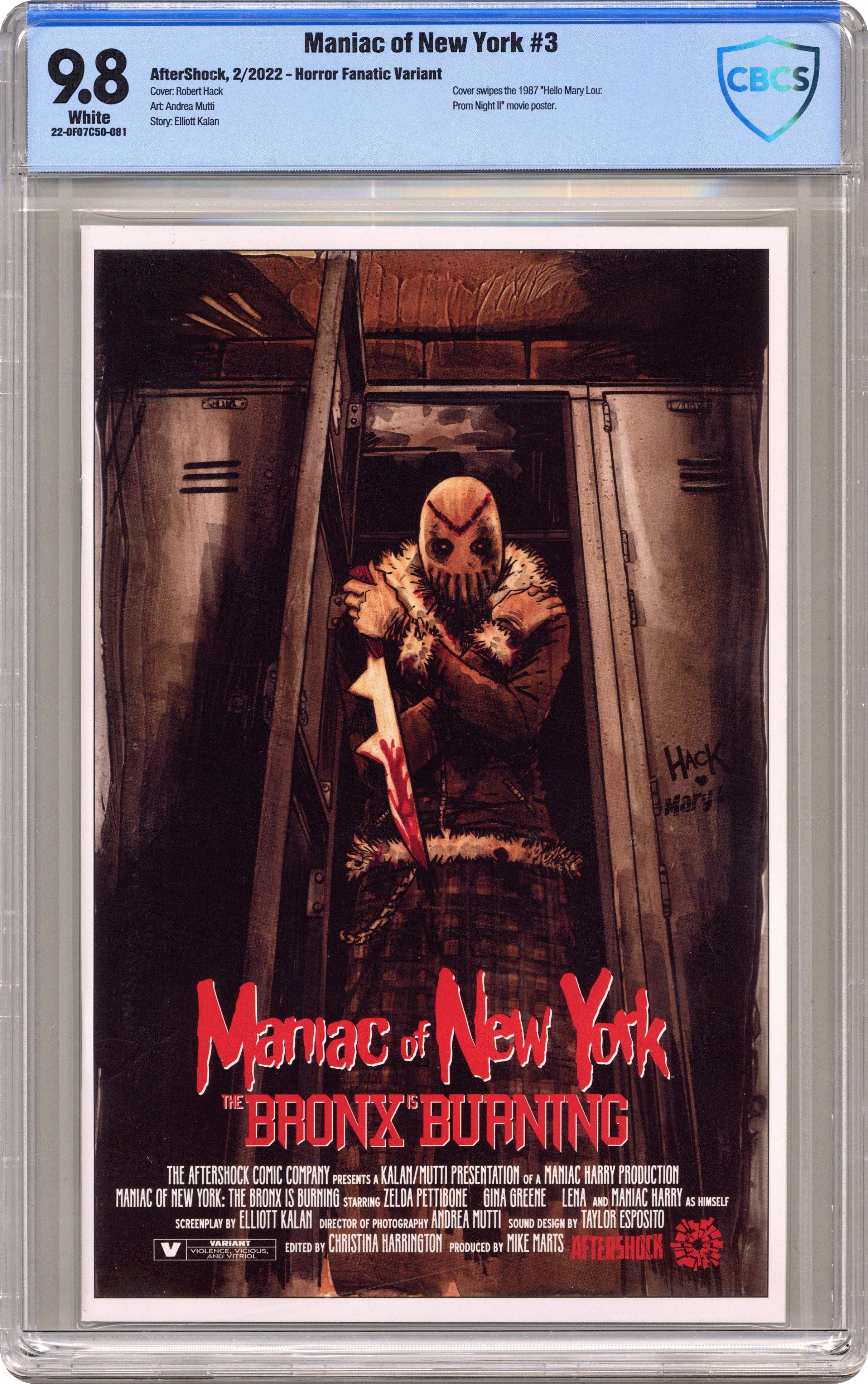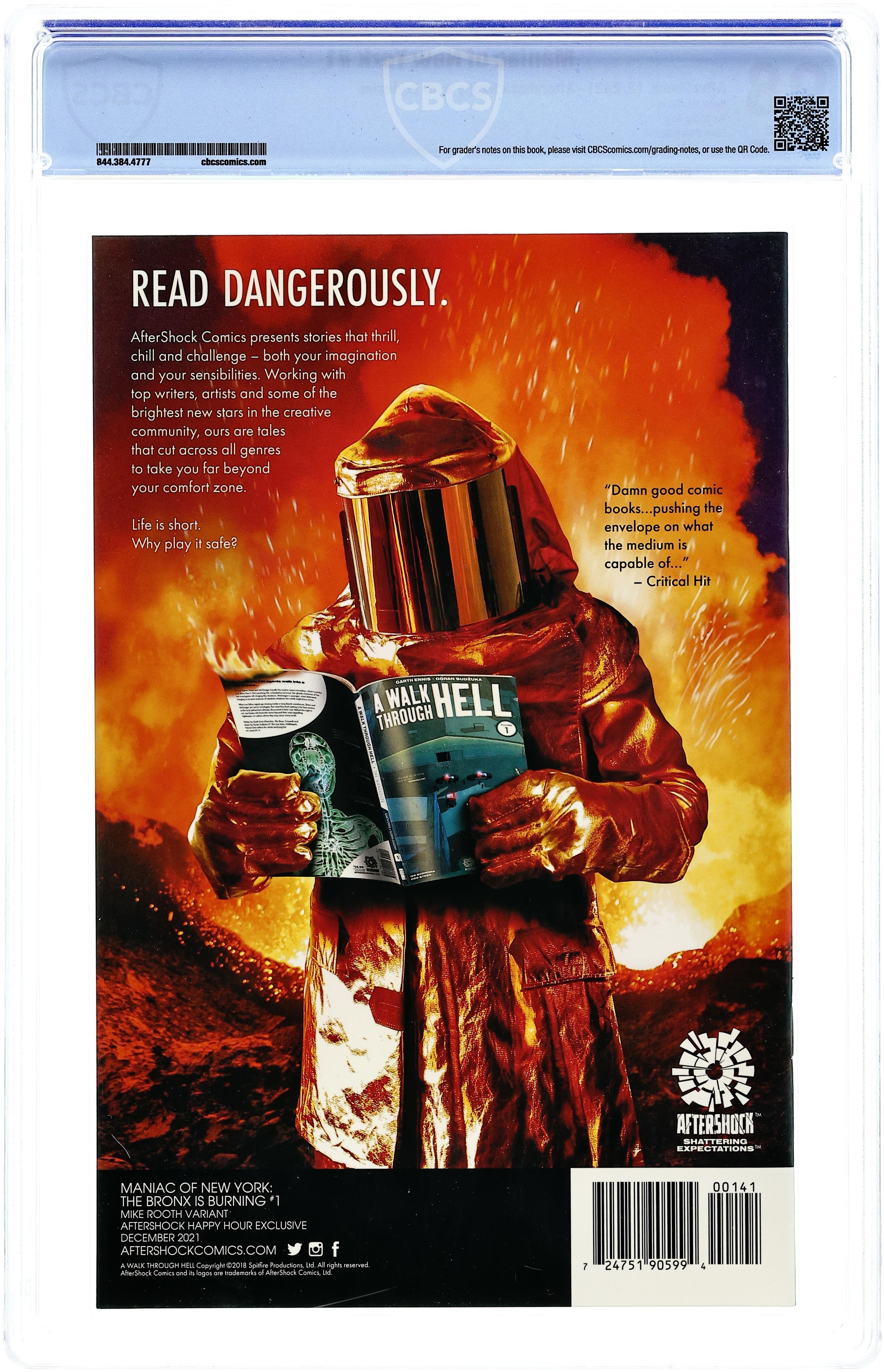 Aftershock Ambassador Exclusive Variant Cover by Dan Panosian. Written by Elliott Kalan. Art by Andrea Mutti. The bloody saga of Maniac Harry continues! After the tragedy of The Death Train, Detective Zelda Pettibone and mayoral aide Gina Greene have lost the trail of the Maniac - and the support of the city. Copycats are springing up, tensions are high and traffic is a nightmare. So, what happens when your favorite unstoppable, mindless killer resurfaces in a Bronx high school? Can Zelda and Gina get there before Maniac Harry adds to his body count? Will the stu-dents tear their attention away from their phones long enough to notice there's a mon-ster in the halls? Writer Elliott Kalan and artist Andrea Mutti return for the next chapter of the hit horror-satire that's somehow even scarier than the world we actually live in! 32 pages, full color.