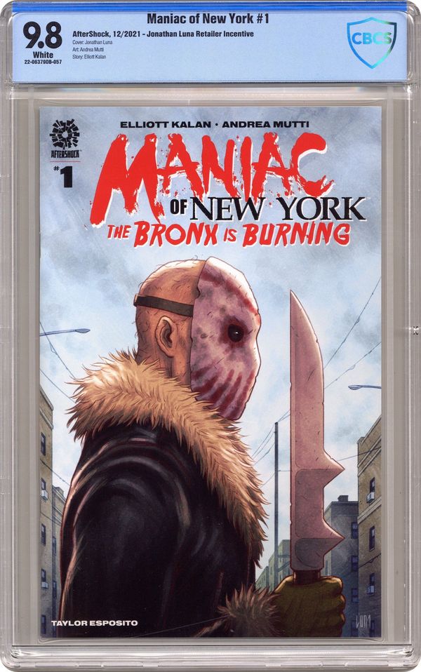Limited 1 for 15 Retailer Incentive Variant Cover. Written by Elliott Kalan. Art by Andrea Mutti. Cover by Jonathan Luna. The bloody saga of Maniac Harry continues! After the tragedy of The Death Train, Detective Zelda Pettibone and mayoral aide Gina Greene have lost the trail of the Maniac - and the support of the city. Copycats are springing up, tensions are high and traffic is a nightmare. So, what happens when your favorite unstoppable, mindless killer resurfaces in a Bronx high school? Can Zelda and Gina get there before Maniac Harry adds to his body count? Will the stu-dents tear their attention away from their phones long enough to notice there's a mon-ster in the halls? Writer Elliott Kalan and artist Andrea Mutti return for the next chapter of the hit horror-satire that's somehow even scarier than the world we actually live in!