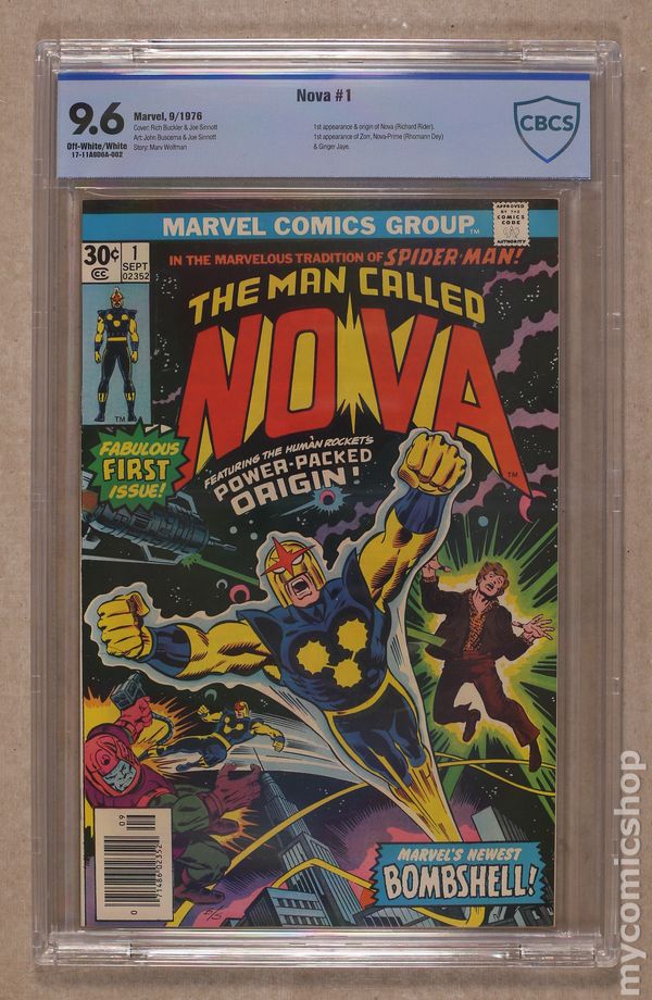 Starts Apr 4 Written by Marv Wolfman. Pencils by John Buscema. Inks Joe Sinnott. When a dying alien passes on his super-powers to Earth teenager Richard Rider, Rider becomes the man called Nova, the human rocket! In the marvelous tradition of Spider-man, Nova must now stop the murderous alien known as Zorr, or Earth is doomed! Note: First appearance of Nova. 36 pages, full color. Cover price $0.30.
