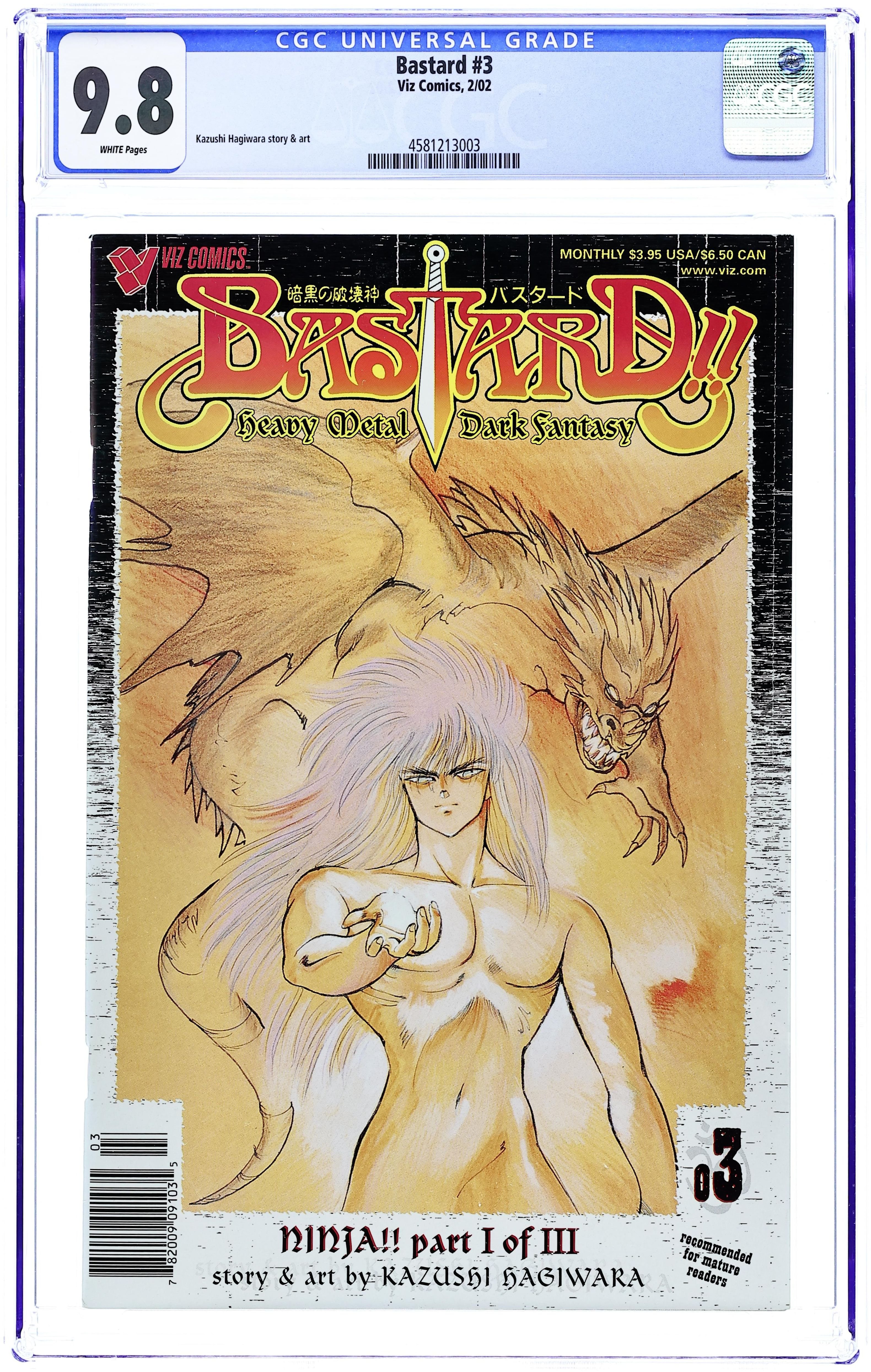 Ninja!! Part 1 of 3 - Story and Art by Kazushi Hagiwara. Out of the shadows steps the first of the bastard's four former allies -- Ninja Master Gara, the commander of an army of hidden warriors! He kidnaps Tia Noto Yoko, thus eliminating the one person who can bring the power of Dark Schneider from 14-year-old Lucien's body! Will Dark Schneider be forever locked within his meek alter ego while the kingdom falls to the ninja and Tia Noto Yoko faces the horror of Gara's clothes-eating slime?! 64 pages, B&W. Mature Readers. Cover price $3.95.