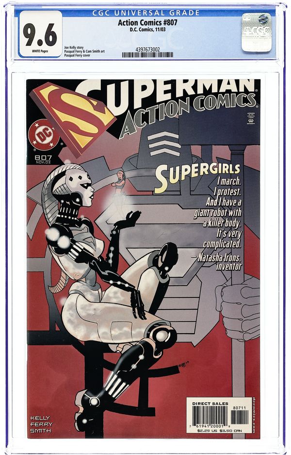 Cover by Michael Cho. Written by Dan Jurgens, Peter J. Tomasi, Marv Wolfman, Geoff Johns, Richard Donner, Scott Snyder, Tom King, Louise Simonson, Paul Dini, Brad Meltzer and Brian Michael Bendis. Art by Dan Jurgens, Norm Rapmund, Patrick Gleason, Curt Swan, Butch Guice, Kurt Schaffenberger, Olivier Coipel, Rafael Albuquerque, Clay Mann, Jerry Ordway, JosĂ© Luis GarcĂa-LĂłpez, Kevin Nowlan, John Cassaday, Jim Lee and Scott Williams. Celebrate 1000 issues of Action Comics with an all-star lineup of top talent as they pay tribute to the comic that started it all! From today's explosive action to a previously unpublished tale illustrated by the legendary Curt Swan to the Man of Tomorrow's future, this very special, oversized issue presents the best of the best in Superman stories! Featuring: "From the City That Has Everything" by Dan Jurgens and Norm Rapmund; "Never-Ending Battle" by Peter J. Tomasi and Patrick Gleason; "An Enemy Within" by Marv Wolfman, Curt Swan, Butch Guice and Kurt Schaffenberger (note: original story by Cindy Goff, Swan and Guice, with the final page courtesy of Superman The Secret Years (1985) #2 by Bob Rozakis, Swan and Schaffenberger); "The Car" by Geoff Johns, Richard Donner and Olivier Coipel; "The Fifth Season" by Scott Snyder and Rafael Albuquerque; "Of Tomorrow" by Tom King and Clay Mann; "Five Minutes" by Louise Simonson and Jerry Ordway; "Actionland!" by Paul Dini, JosĂ© Luis GarcĂa-LĂłpez and Kevin Nowlan; "Faster Than a Speeding Bullet" by Brad Meltzer and John Cassaday; and "The Truth" by Brian Michael Bendis, Jim Lee and Scott Williams. Plus: Pin-ups by John Romita, Jr. and Danny Miki, Walter Simonson, and Jorge Jimenez. Softcover, 80 pages, full color. Rated T Cover price $7.99.