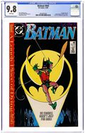 First printing. Direct Edition. Cover art by Mike Mignola. "A Death in the Family" part 2 of 4, script by Jim Starlin, pencils by Jim Aparo, inks by Mike DeCarlo; Jason meets his real mother, Sheila Haywood, but she turns out to be working for the Joker and allows her son to fall into his deadly hands inside of a warehouse; Joker beats Robin with a crowbar and leaves him for dead as a badly beaten Robin attempts to save his mom and himself from the dynamite left behind by the Joker as he leaves them both to a horrible fate; Batman watches in horror as the warehouse containing Jason and Sheila blows up, too late to stop the Joker. Infamous Phone Poll on death or life for Robin (Jason Todd). The Direct Sales copies of this comic, released first, contained a 1-800 phone number to either vote "for" or "against" the death of Jason Todd on the inside back cover. The newsstand copies, released 3 weeks later did not contain the 1-800 number. NOTE: Most issues from 397-432 were reprinted in 1989 and sold in multipacks. These 2nd and 3rd prints have back cover ads dated 1989. 52 Pages, Full Color. Cover price $1.50.