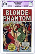 Stories by Bill Woolfolk and unknown. Art by unknown. The Blonde Phantom stars in: "Justice for Jimmy Sullivan" with story by Bill Woolfolk; "Her Double Trouble!"; and "Rhapsody in Death" with story by Bill Woolfolk. Also: 2-page text story "The Murder Gang"! Plus: the Sub-Mariner in "The Playboy Killer!" (spoiler warning) - Host Nick Gaynor throws an early wedding party cruise aboard his yacht for the girl who spurned his advances and her fiance. However, when the Sub-Mariner (and Namora, who was also invited along) hears a mistake in naval language used by the Captain, he smells a rat and investigates. Soon, the young couple disappears and fire breaks out aboard the ship. Namor notes a launch speeding away from the ship, speeds after it, and rounds up the villains. Characters in this issue: Blonde Phantom [Louise Mason]; Jimmy Sullivan (first appearance); Dr. Demise (villain, first appearance); a phony Blonde Phantom (villain, first appearance); Sub-Mariner [Prince Namor]; Namora; Barry; Kathy (Barry's fiancee); Nick Gaynor (villain, playboy); Charlie Manelli (villain, yacht's Captain and arsonist). 32 pages, full color. Cover price $0.10.