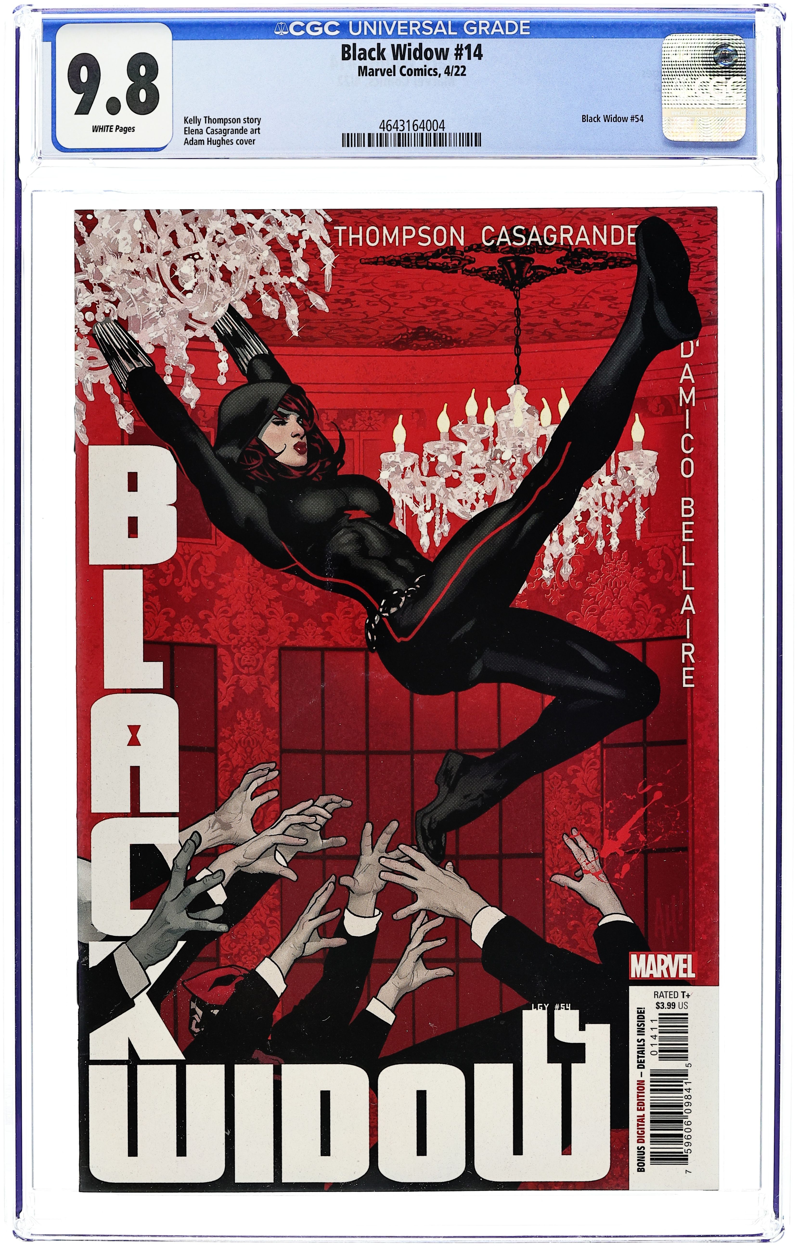 Written by Kelly Thompson. Art by Elena Casagrande. Cover by Adam Hughes. THE EISNER-WINNING SERIES BRINGS YOU A VILLAIN WORTH DYING FOR! Natasha Romanoff is known for having skeletons in her closet, but THE LIVING BLADE is the one skeleton she hoped she'd never encounter again. He nearly killed her the first time they tangled, years ago in Madripoor - will he finish the job this time at the bidding of THE HOST? Thompson and Casagrande reunite for Natasha's fight to save the people of San Francisco from a ruthless predator in their midst. 28 pages, full color. Rated T+ Cover price $3.99.