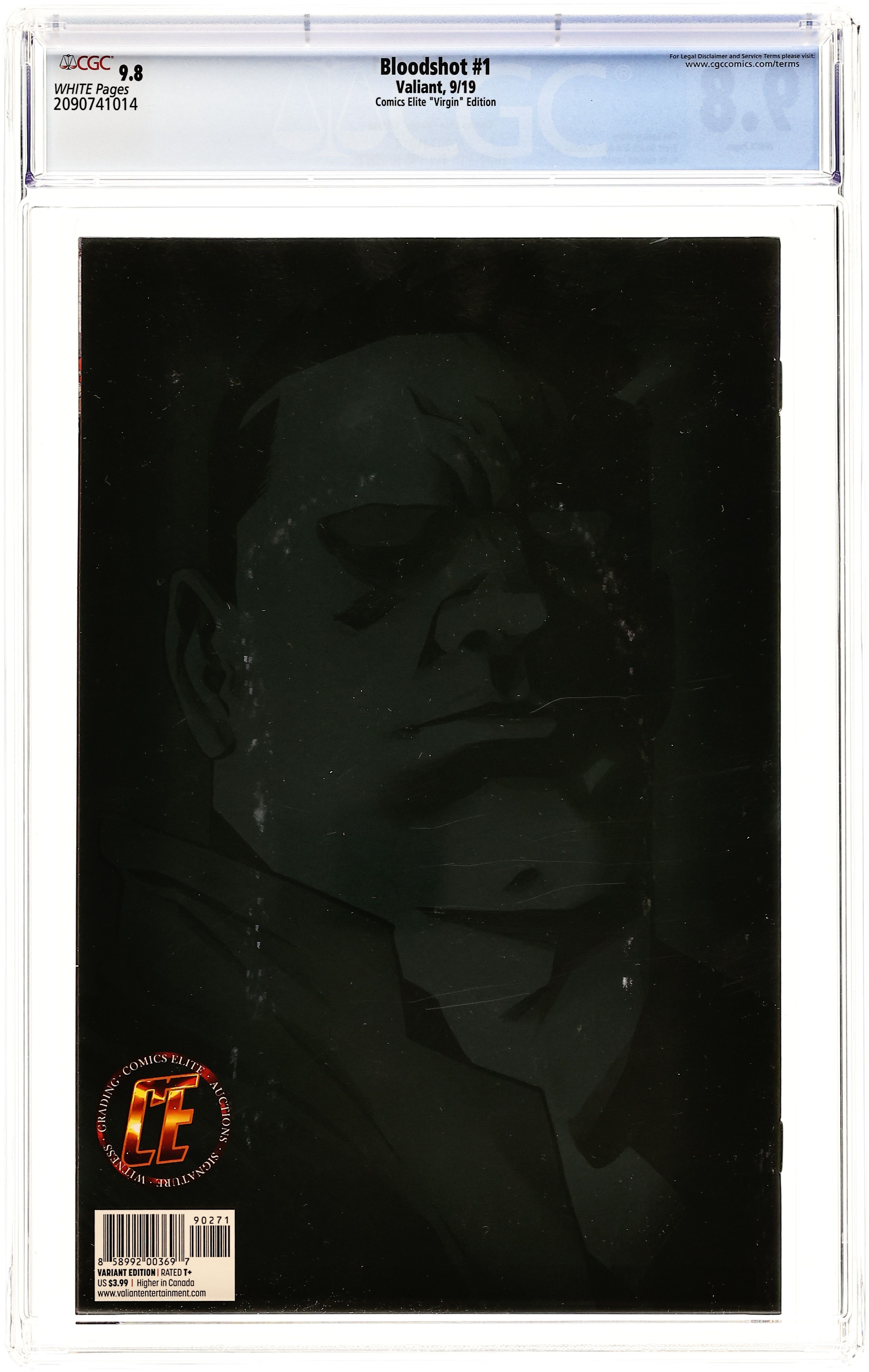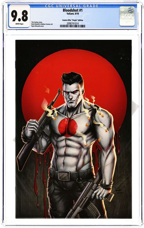 Comics Elite Exclusive Virgin Cover by Ryan Kincaid. Written by Tim Seeley. Art by Brett Booth. Bloodshot is back with a few new thrilling tricks up his sleeve! No amount of high-octane explosions can keep Bloodshot from completing his new mission. Who is the mysterious BLACK BAR, and what do they want with Bloodshot? 32 pages, full color. Rated T+ Cover price $3.99.