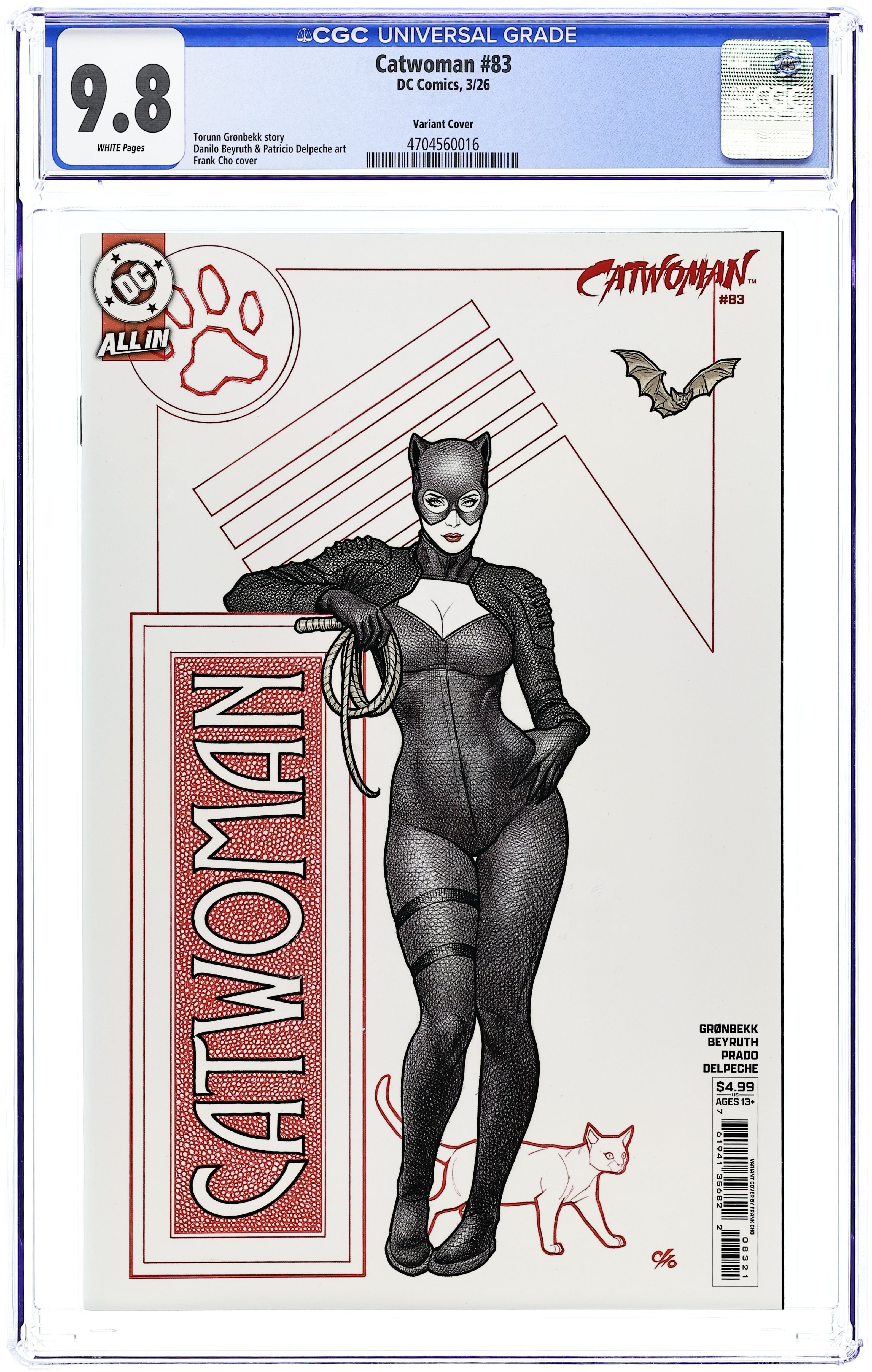 Limited 1 for 50 Retailer Incentive Variant Cover. Written by Torunn Gronbekk. Art by Marianna Ignazzi. Cover by Frank Cho. WHAT'S ONE CATWOMAN BETWEEN GOOD FRIENDS? Selina's international hunt brings her to Stockholm in search of an old acquaintance who has become a crime lord there... Of course, she's pretty sure he might be the one who's put a price on her head, so she's going to need to sneak in if she wants to get answers. Luckily for this cat, there's a fancy-dress party that's the perfect opportunity to slink in unnoticed. 32 pages, full color. Rated T+ Cover price $4.99.