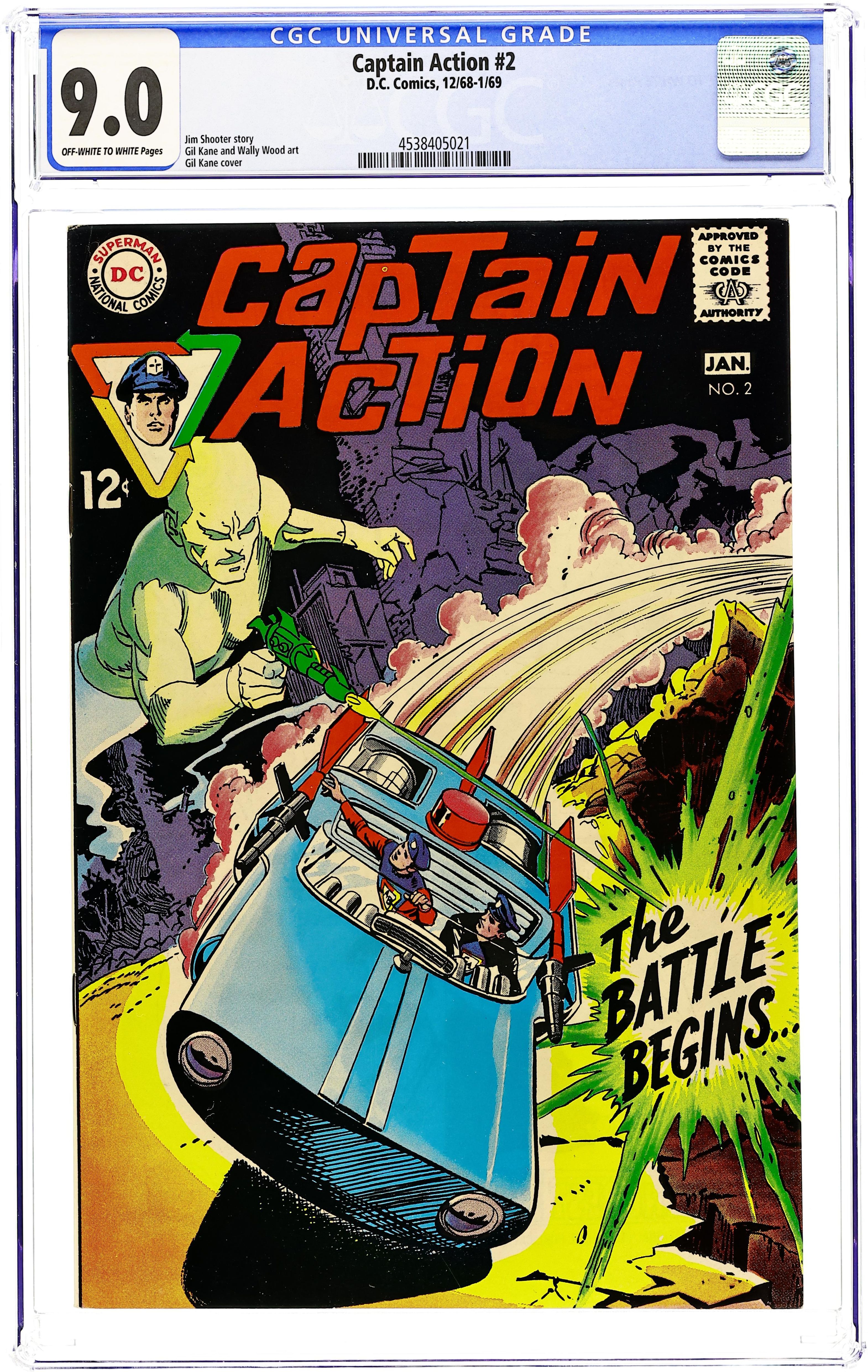 "Captain Action's Reactions." Captain Action and Action boy go after Krellik, who has stolen their magical god coins. Based on the dolls (I mean action figures) created by the Ideal Toy Company. Script by Jim Shooter, pencils by Gil Kane, inks by Wally Wood. Cover by Kane. Cover price $0.12.