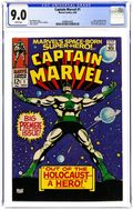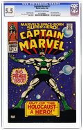Cover pencils by Gene Colan, inks by Vince Colletta. "Out Of The Holocaust--a Hero!", script by Roy Thomas, pencils by Gene Colan, inks by Vince Colletta; 3rd app. of Captain Marvel; Continued from Marvel Super-Heroes #13; With the Sentry rampaging across the Cape, Captain Mar-Vell decides that the Sentry's rampage would jeopardize his mission to learn all he can about the human race, and suspects that the Sentry's revival is due to Yon-Rogg's tampering; As Captain Mar-Vell (whose name is believed to be "Captain Marvel" to those at the Cape) protects the base (and more specifically security officer Carol Danvers) from the Sentry's rampage, aboard the Kree ship above Earth, Una tries to free herself; Unable to do so, she settles for listening to the reports given by her robot, which is linked into the battle computers; While this is occurring, the landlord at the hotel Mar-Vell is staying at, suspicious that Mar-Vell may be a foreign spy, snoops around Mar-Vell's room for proof; Finding Mar-Vell's carrying case, he sets off a device inside. 36 pgs., full color. Cover price $0.12.
