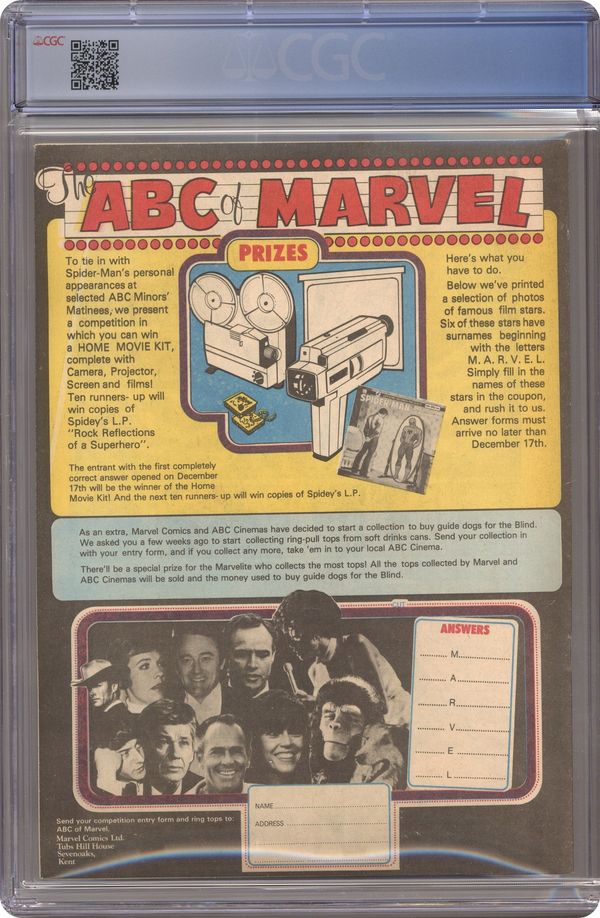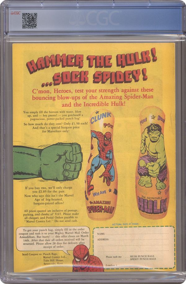 Magazine size weekly British edition comic published weekly by Marvel Comics International. 32 pages. Cover and 13 interior pages in full color, rest black and white.