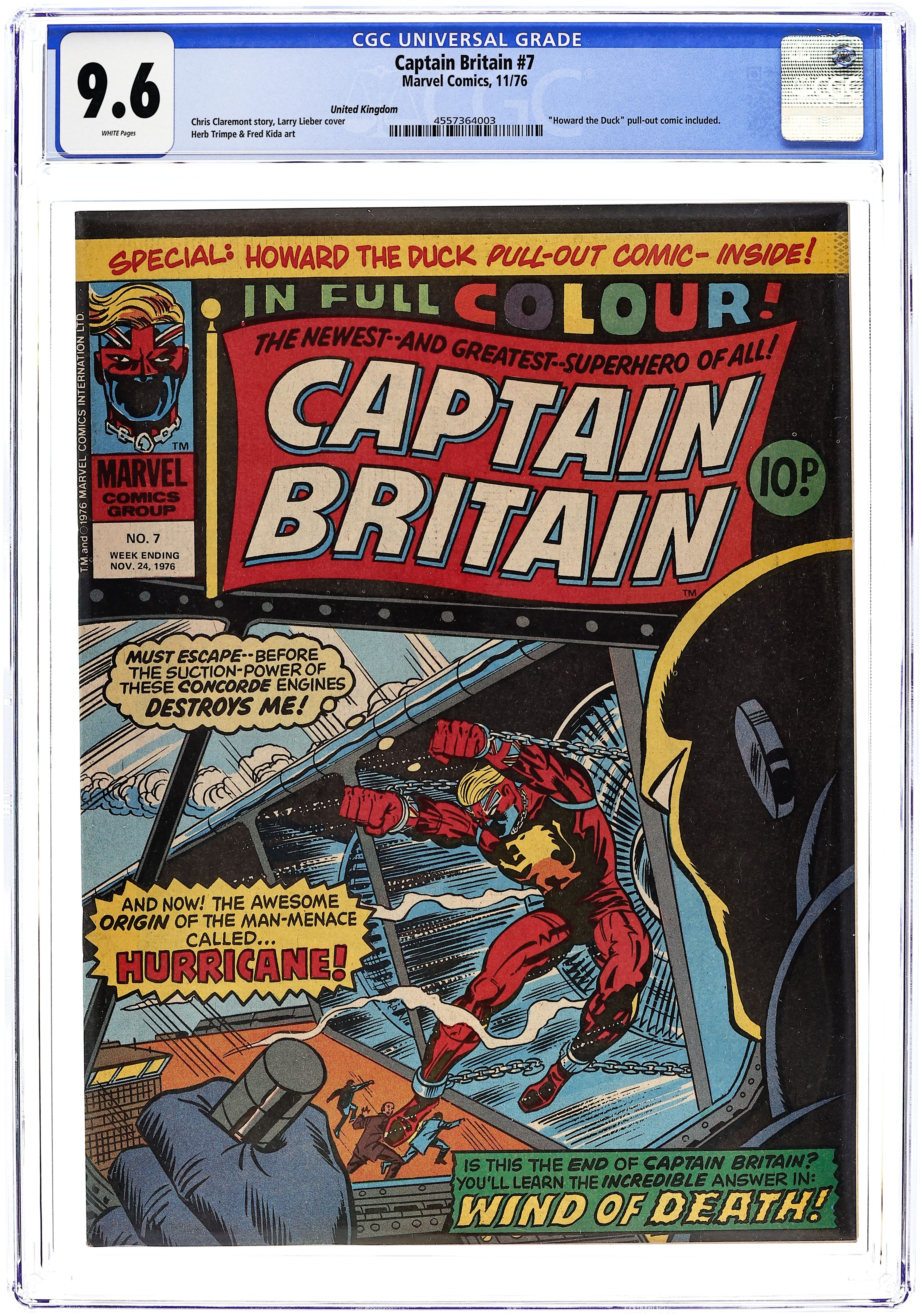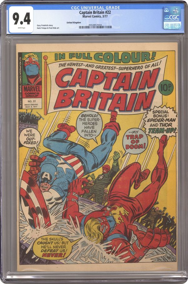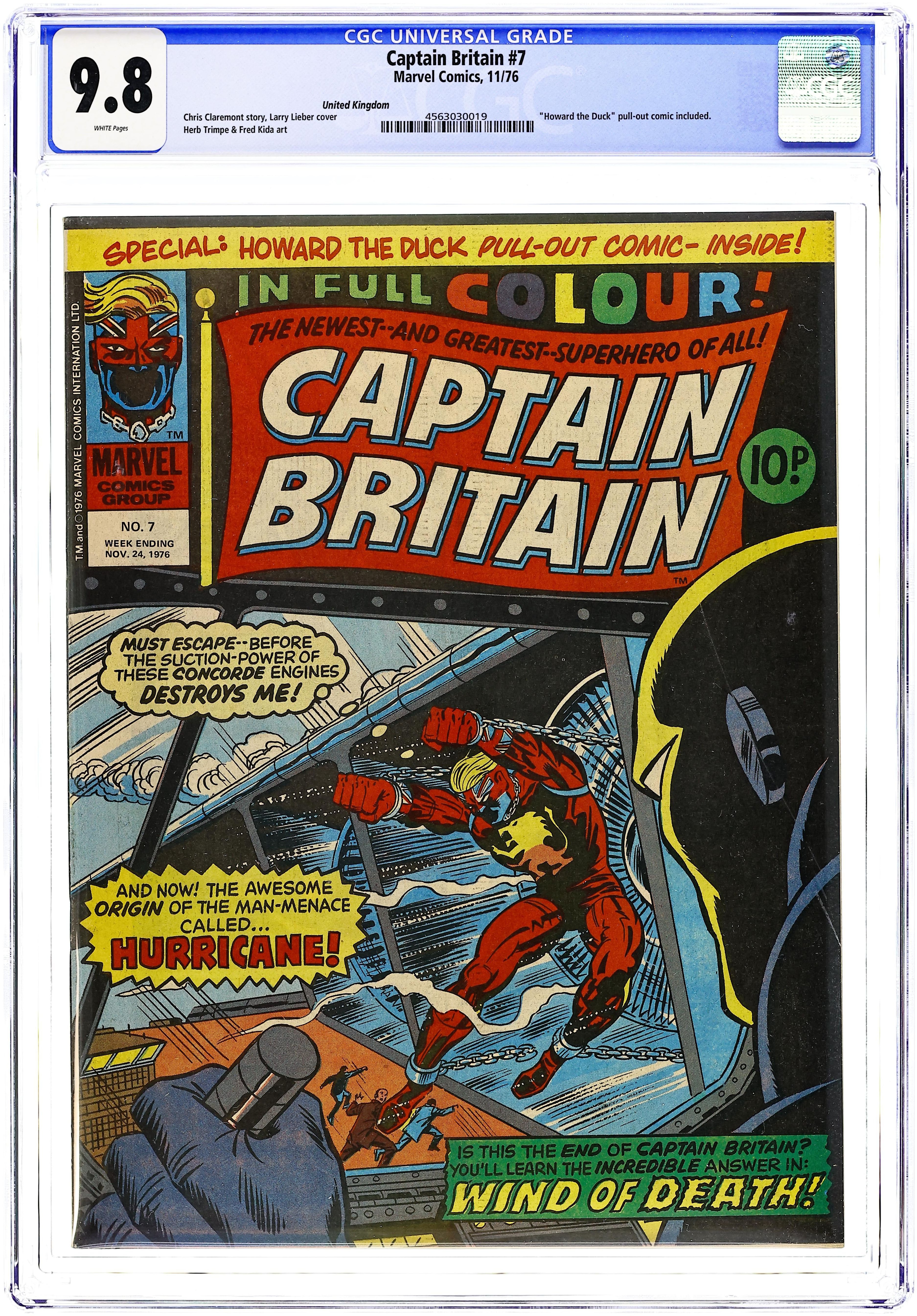 Comes with Captain Britian boomerang. Magazine size weekly British edition comic published weekly by Marvel Comics International. 32 pages. Cover and 13 interior pages in full color, rest black and white.